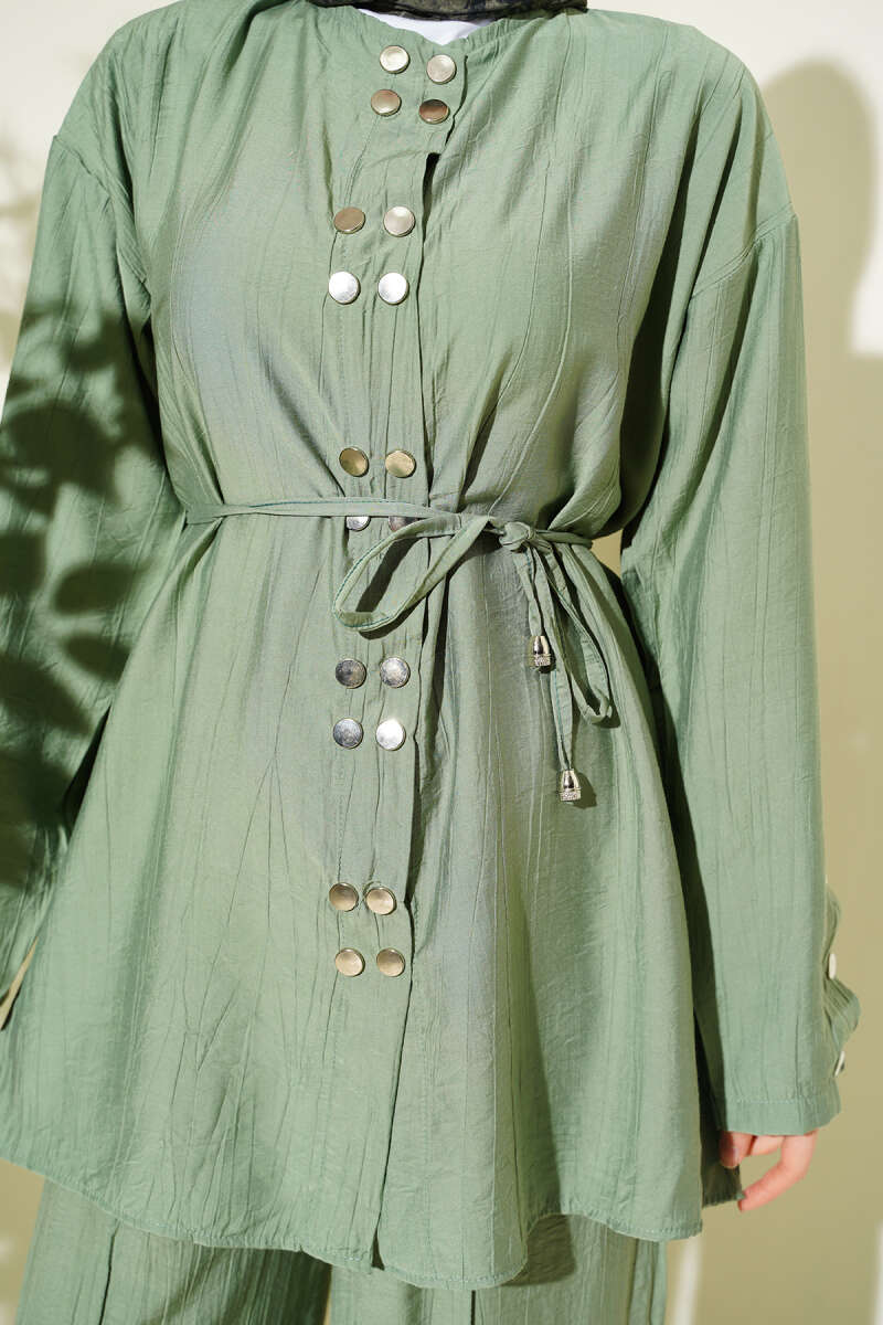Çıtçıtlı İp Kuşaklı İkili Takım Çağla Yeşili