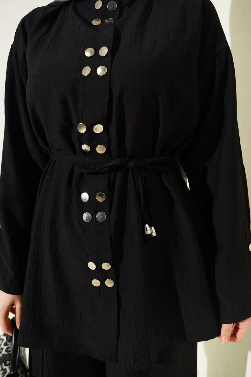 Çıtçıtlı İp Kuşaklı İkili Takım Siyah