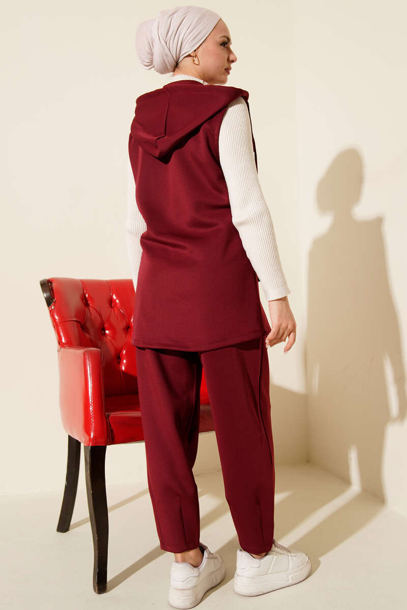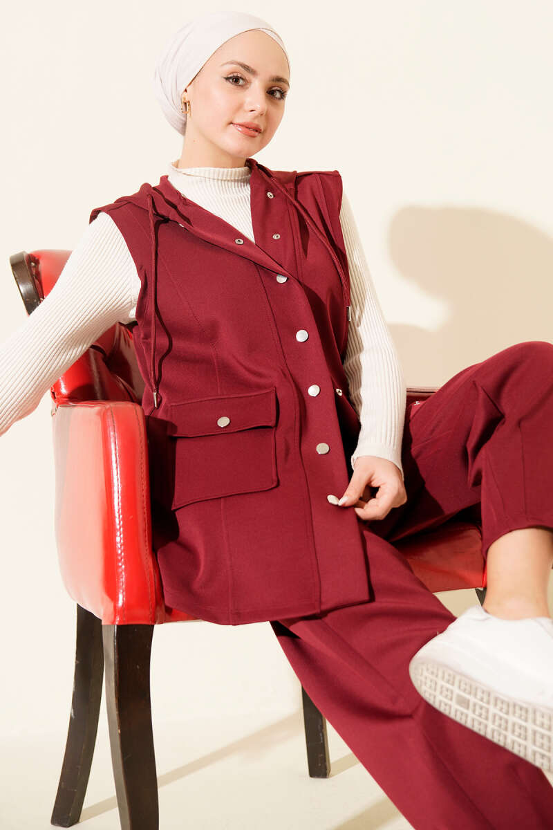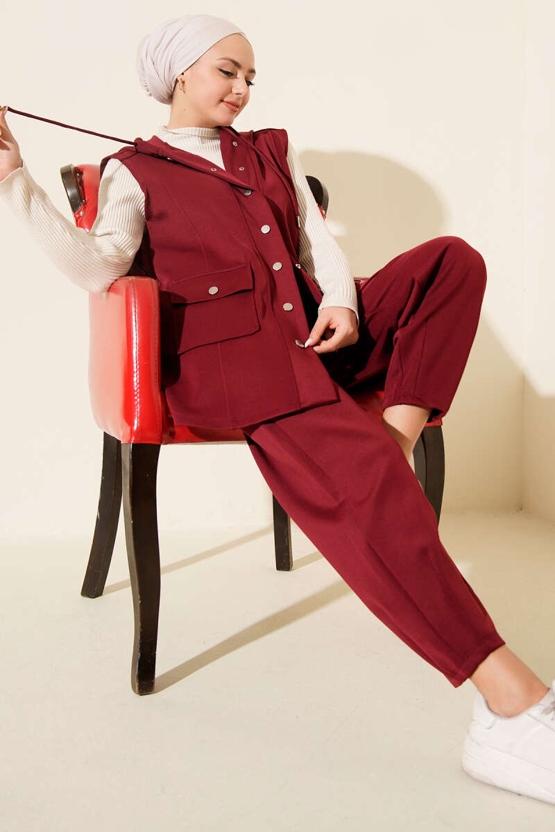 Biyeli Armalı Loyşa İkili Takım Bordo