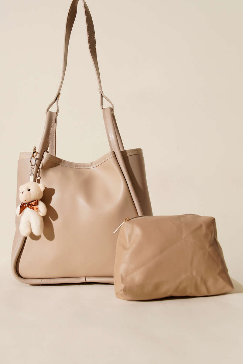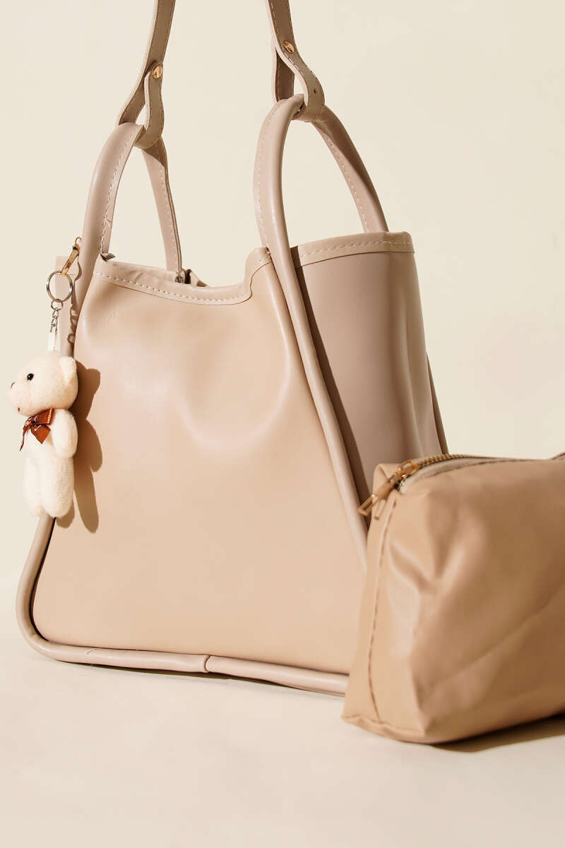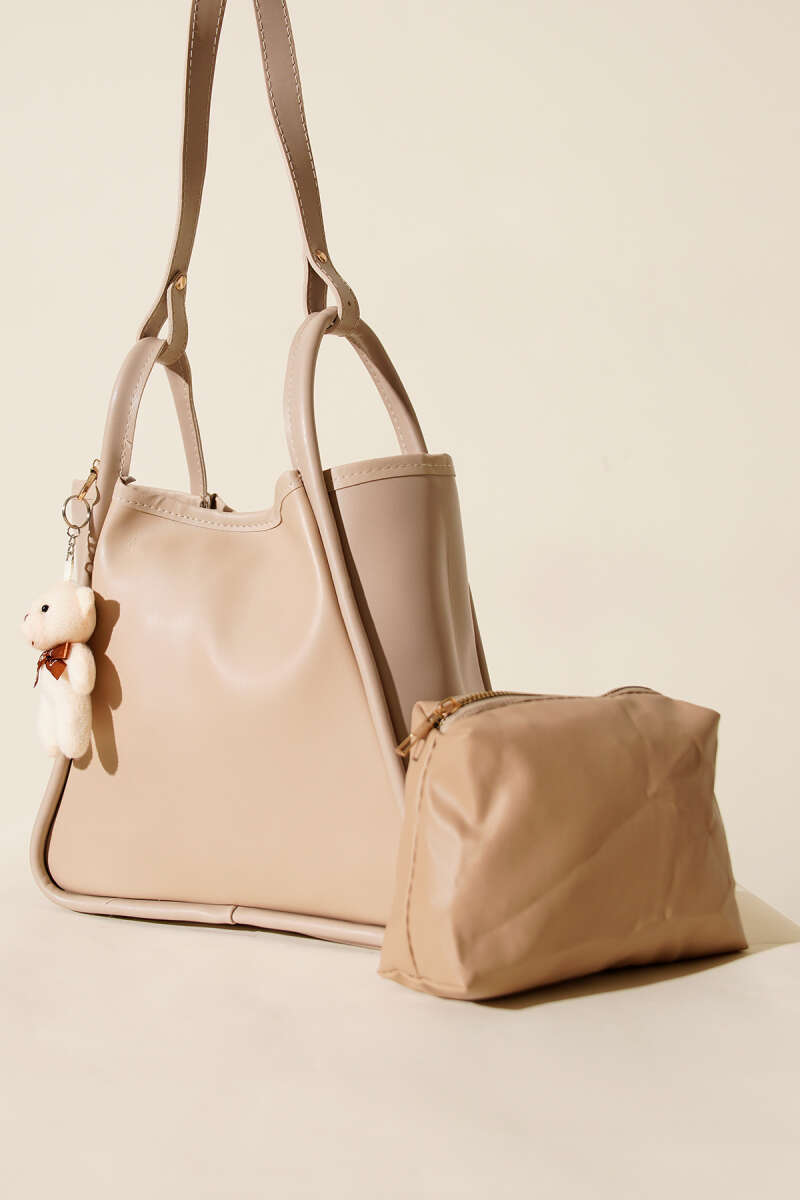 Çıtçıtlı Makyaj Çantalı Kadın El Çantası Bej Taba
