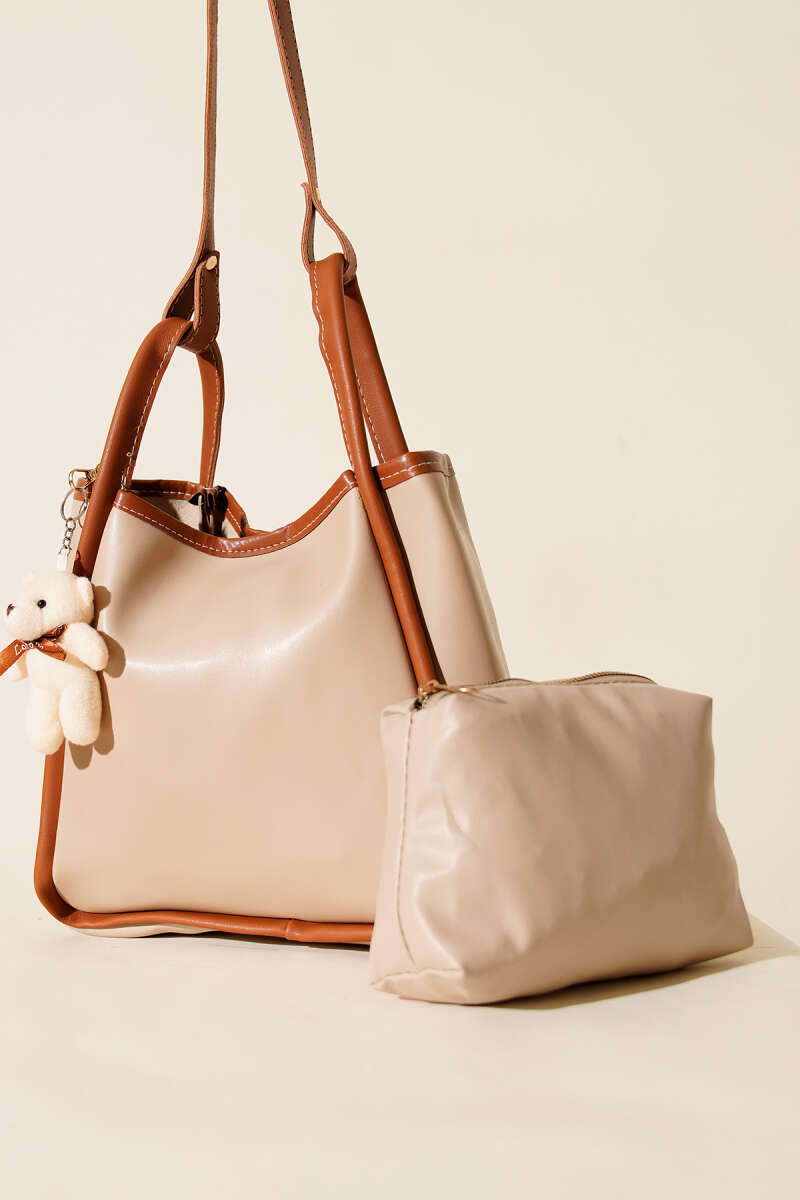 Çıtçıtlı Makyaj Çantalı Kadın El Çantası Bej