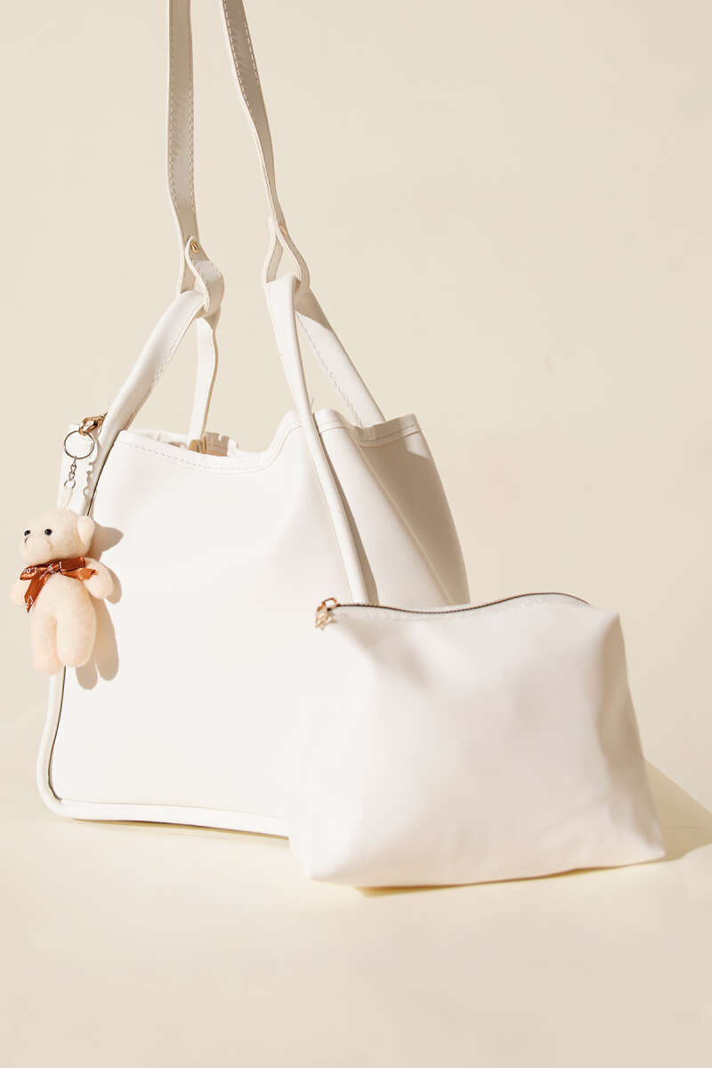 Çıtçıtlı Makyaj Çantalı Kadın El Çantası Beyaz