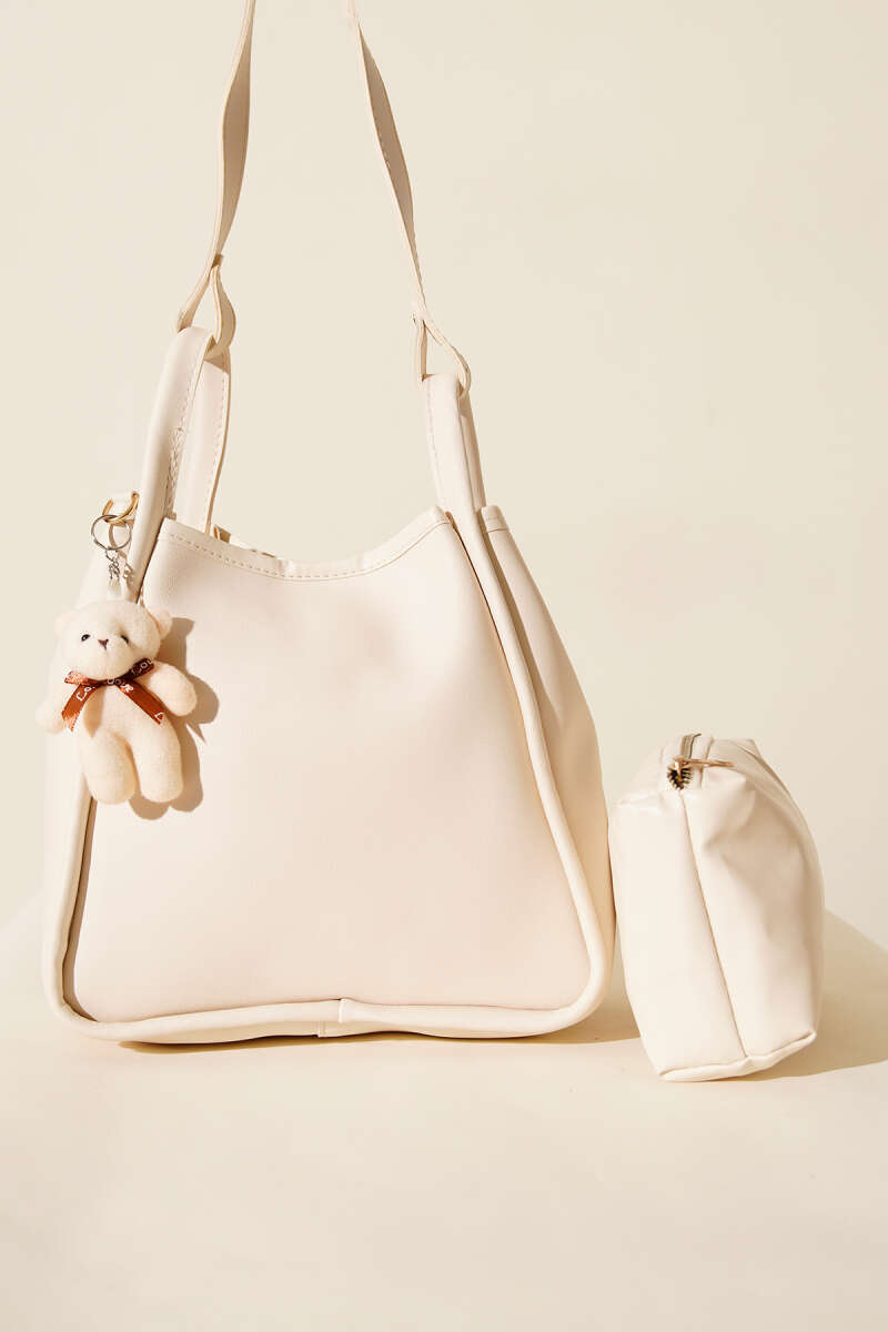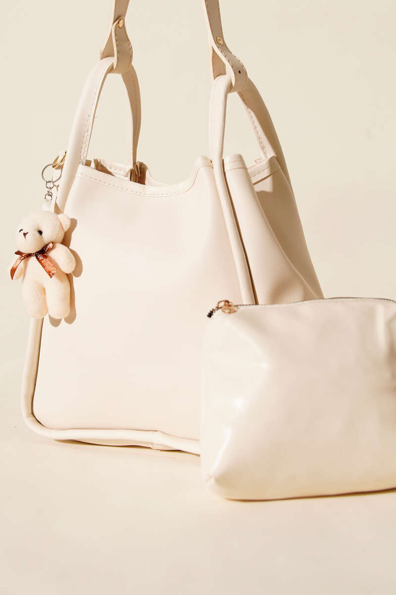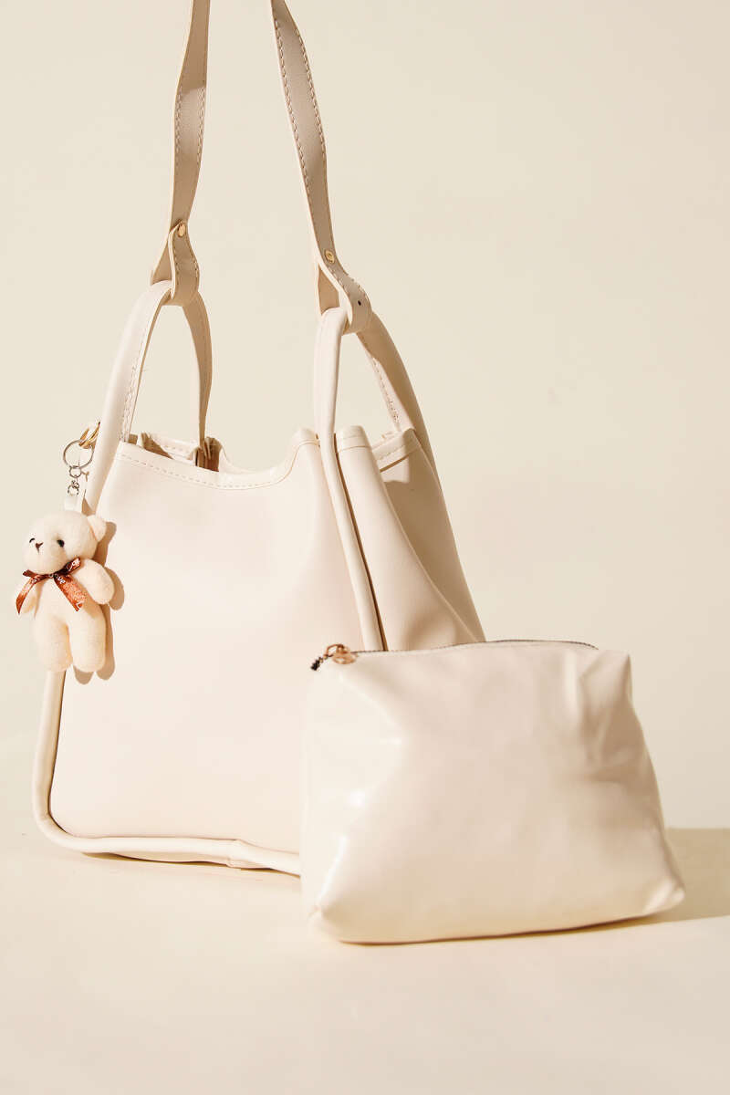 Çıtçıtlı Makyaj Çantalı Kadın El Çantası Beyaz