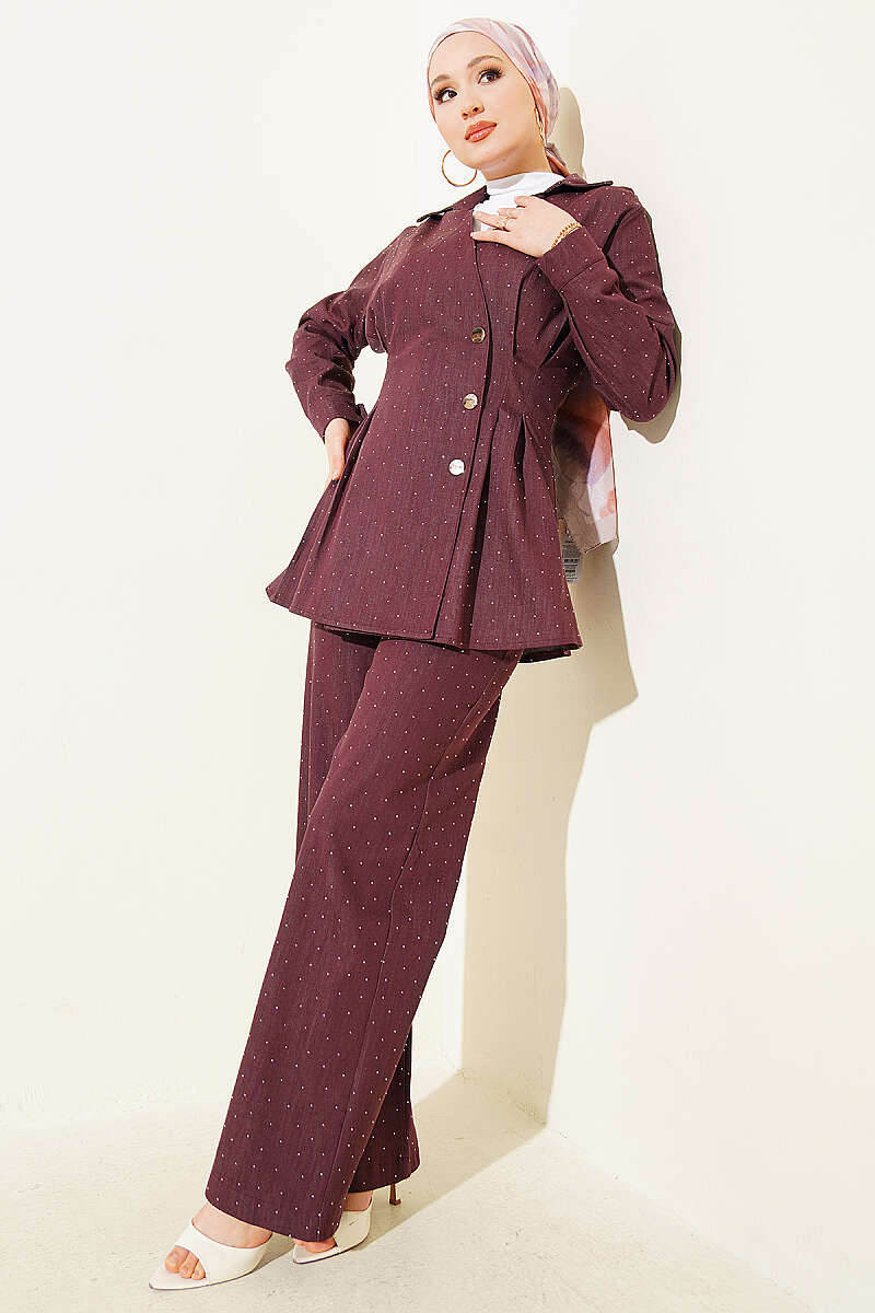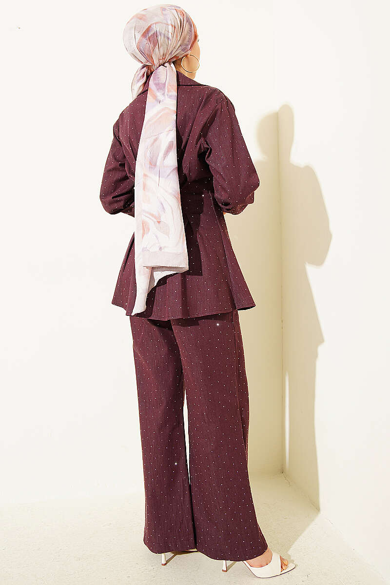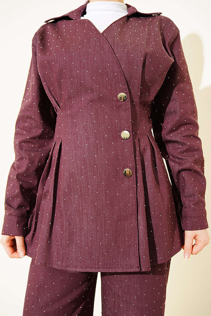 Çıtçıtlı Mini Taşlı Kot İkili Takım Mürdüm