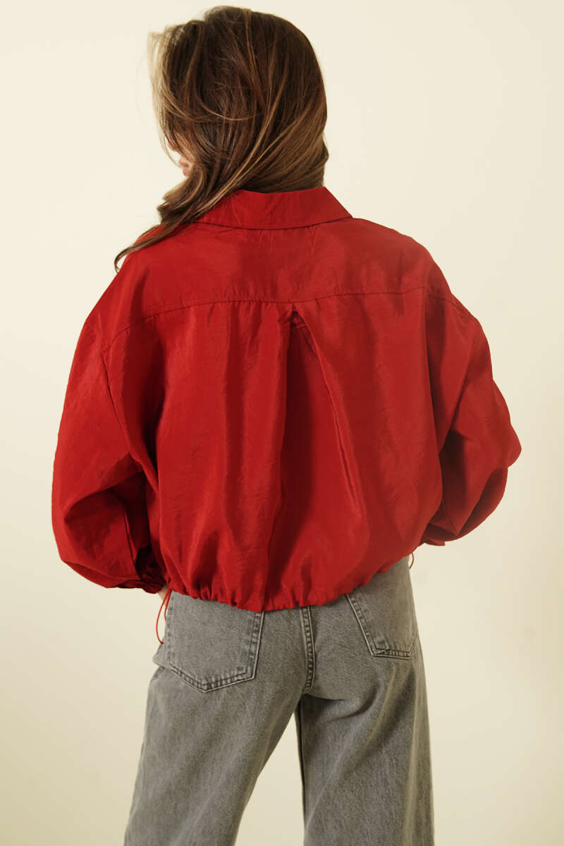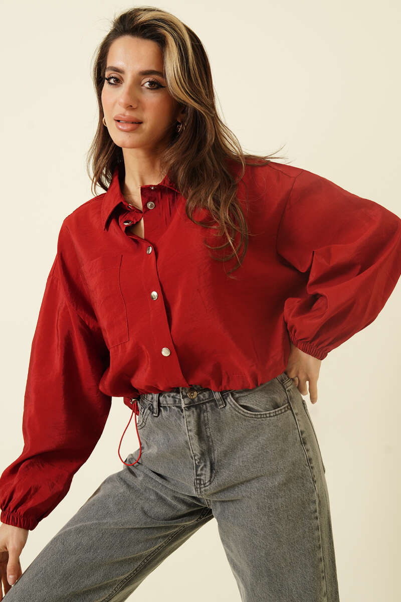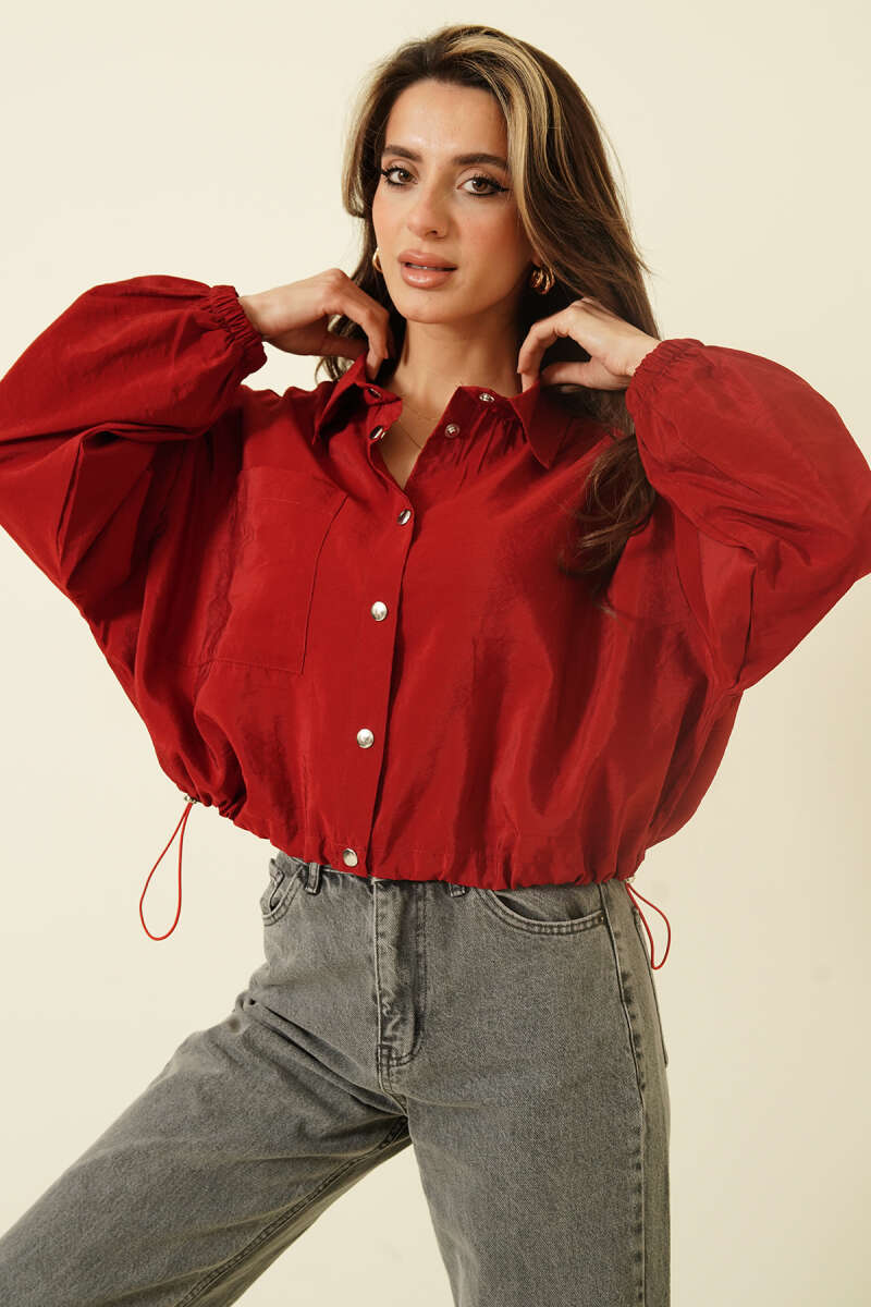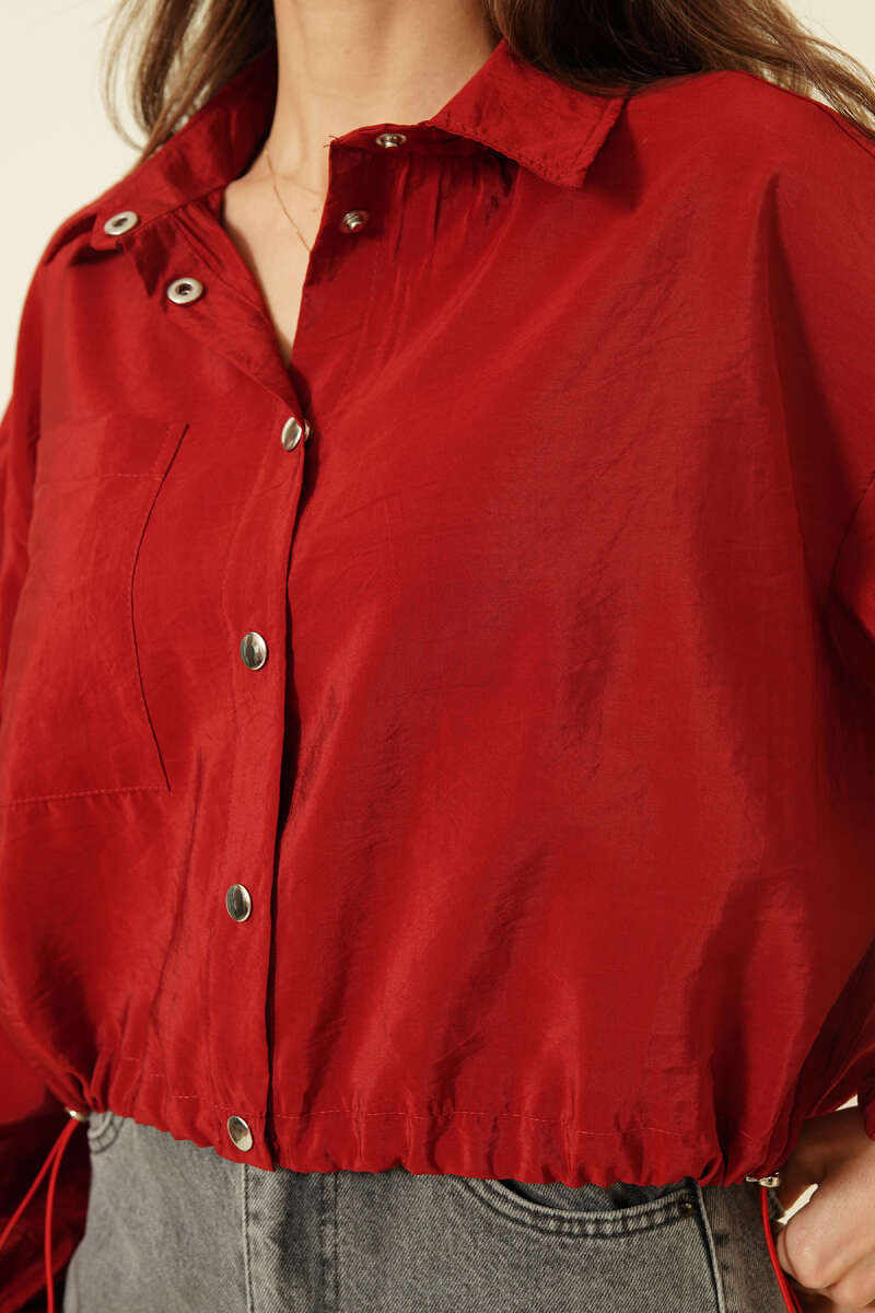 Çıtçıtlı Paraşüt Kısa Gömlek Bordo