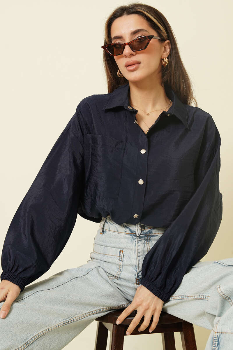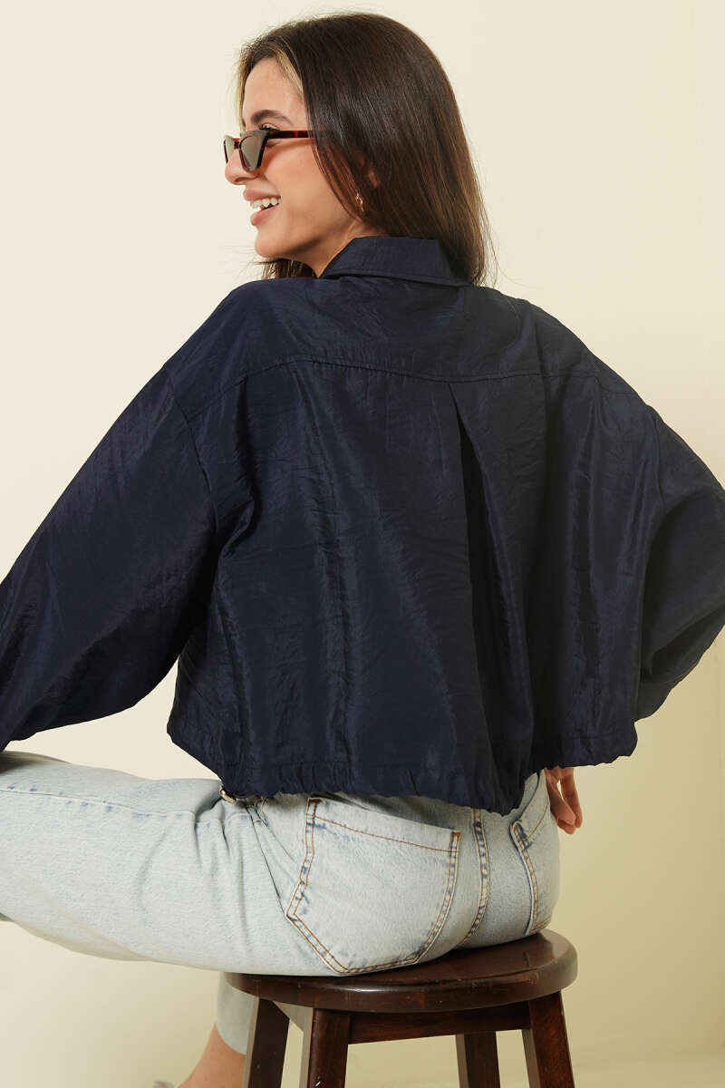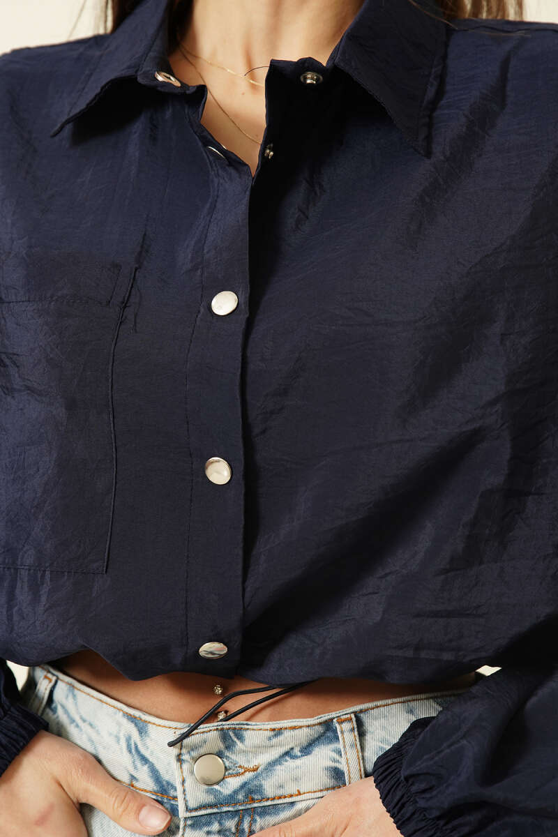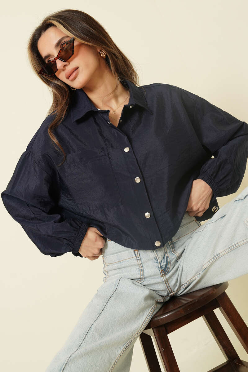 Çıtçıtlı Paraşüt Kısa Gömlek Lacivert