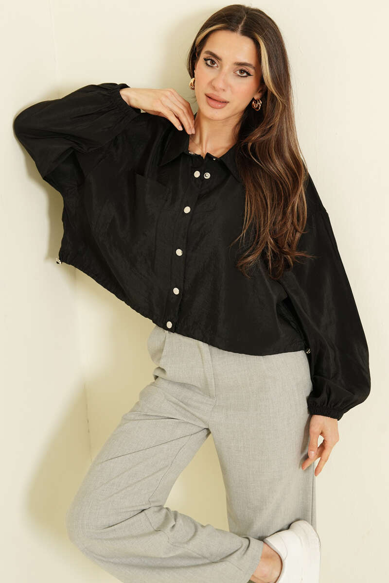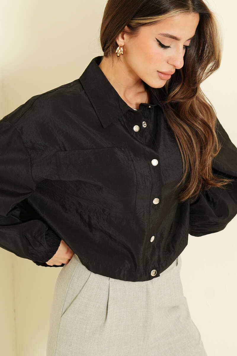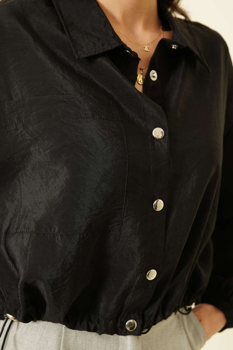 Çıtçıtlı Paraşüt Kısa Gömlek Siyah