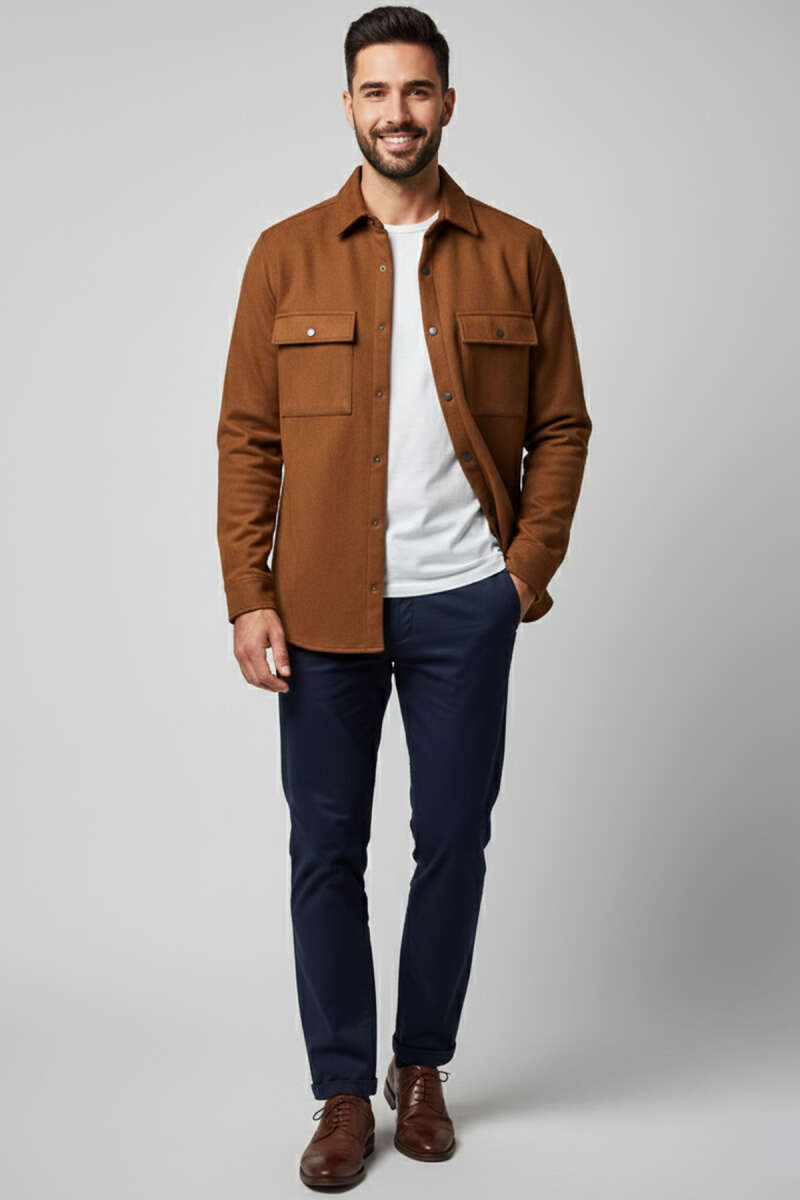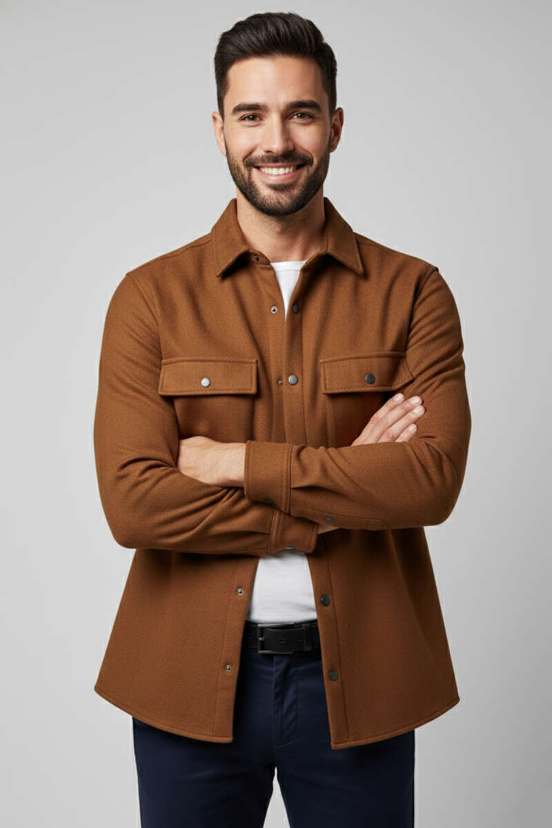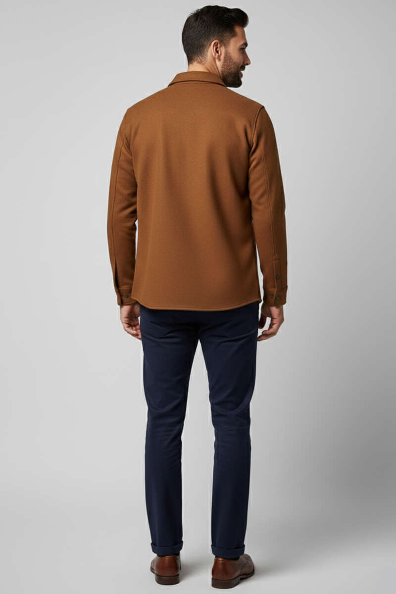 Kesik Çizgili Erkek Keten Gömlek Kahve