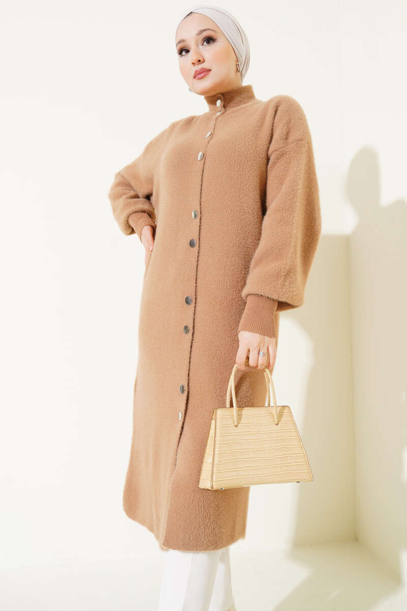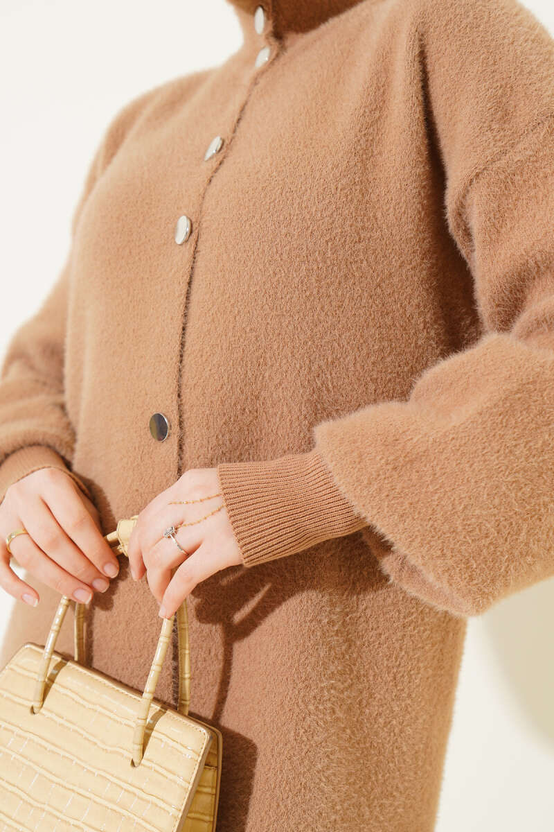 Fularlı Düğmeli Triko Hırka Haki