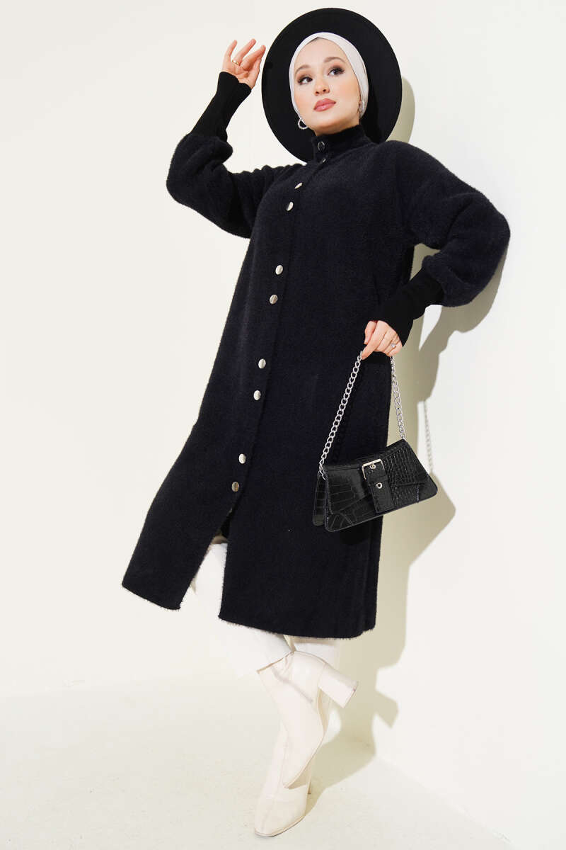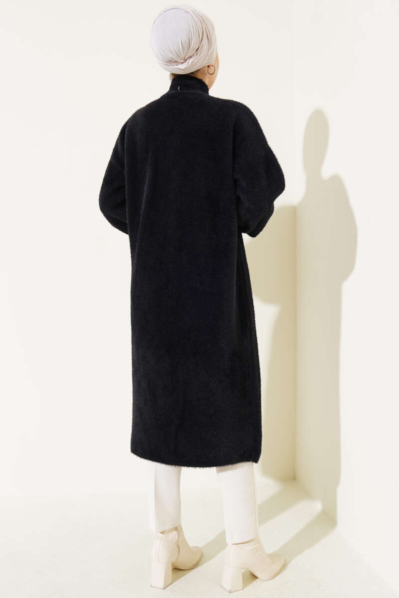 Çift Cepli Sakallı Triko Hırka Siyah
