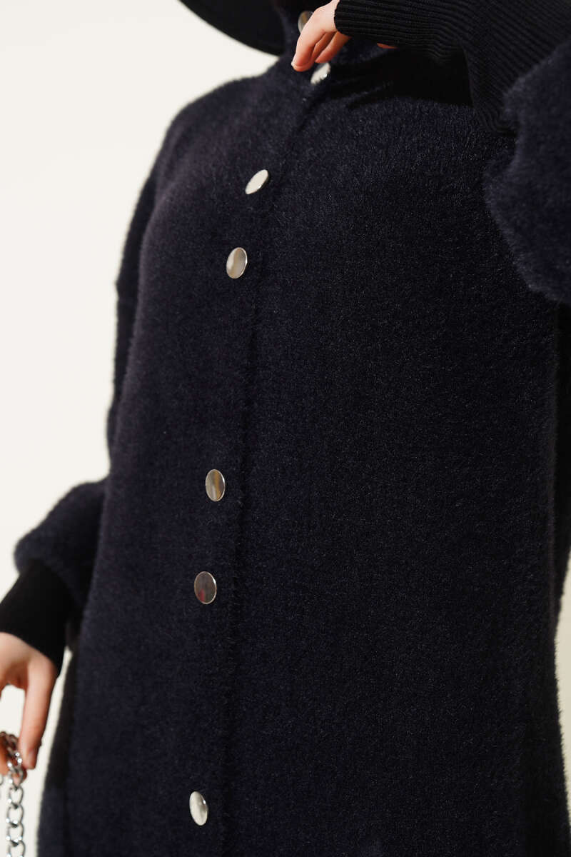 Düğme Detaylı Basic Triko Hırka Lacivert