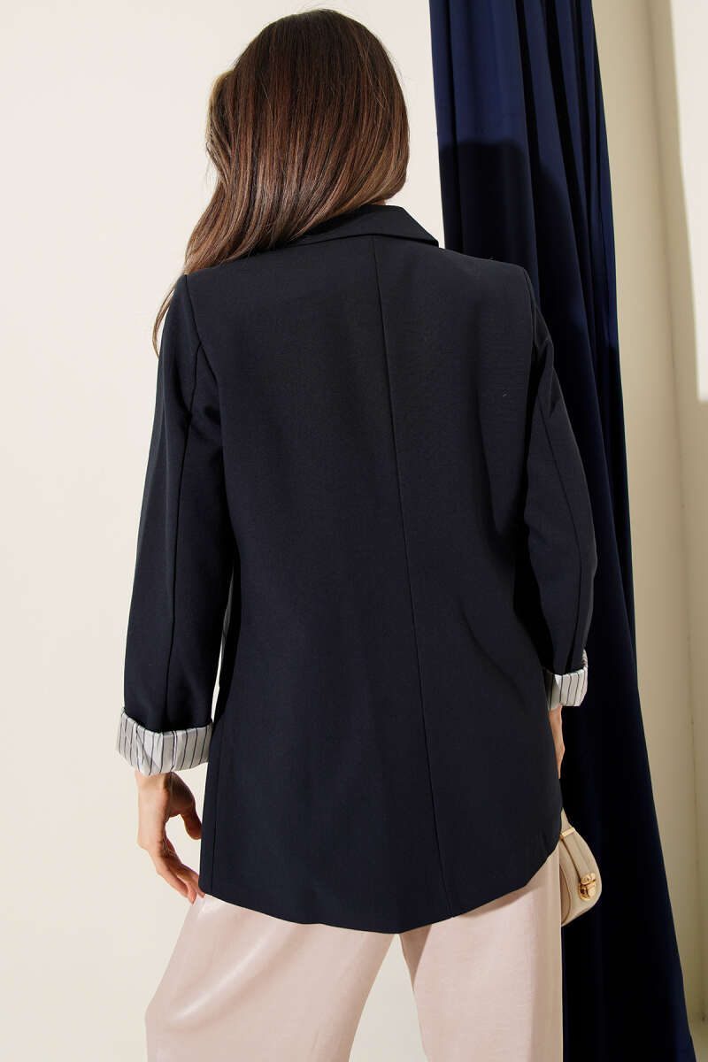 Çizgi Astarlı Düğmeli Blazer Ceket Lacivert