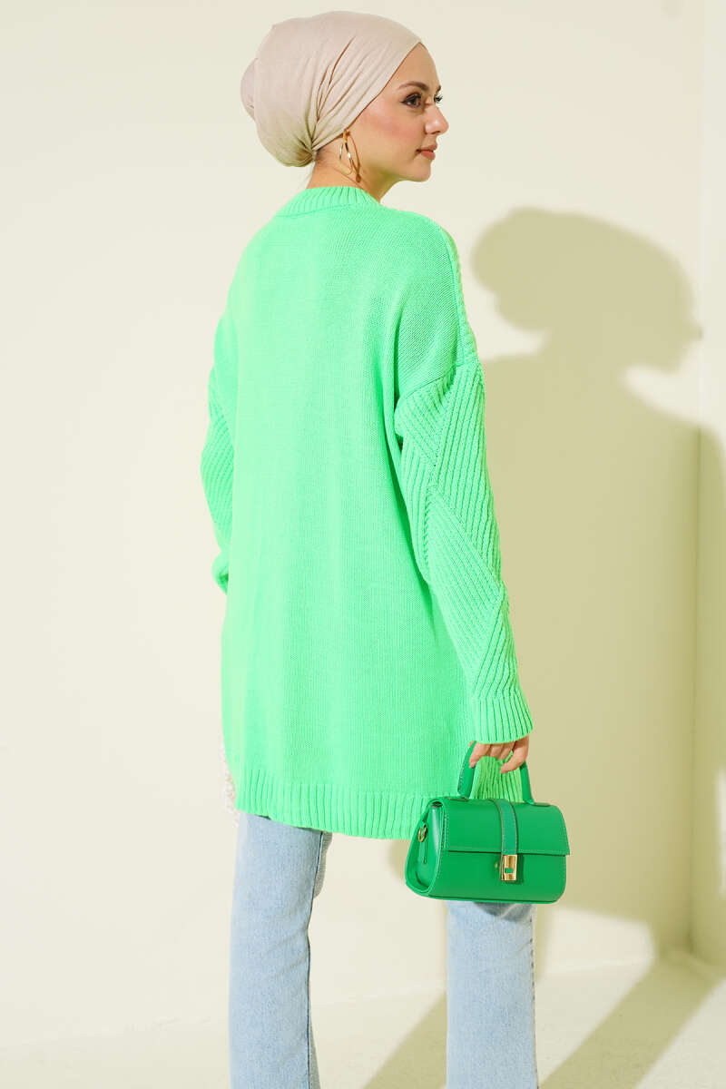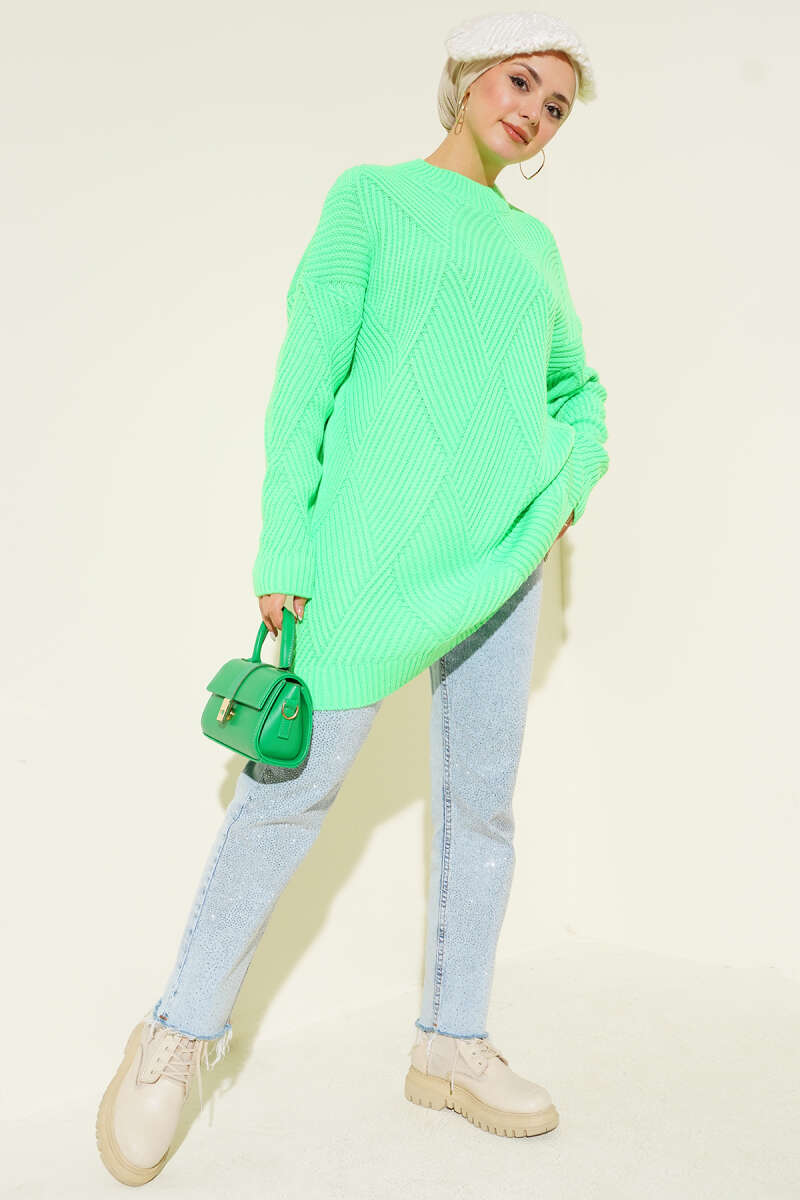 Çizgi Baklava Desen Triko Tunik Zümrüt