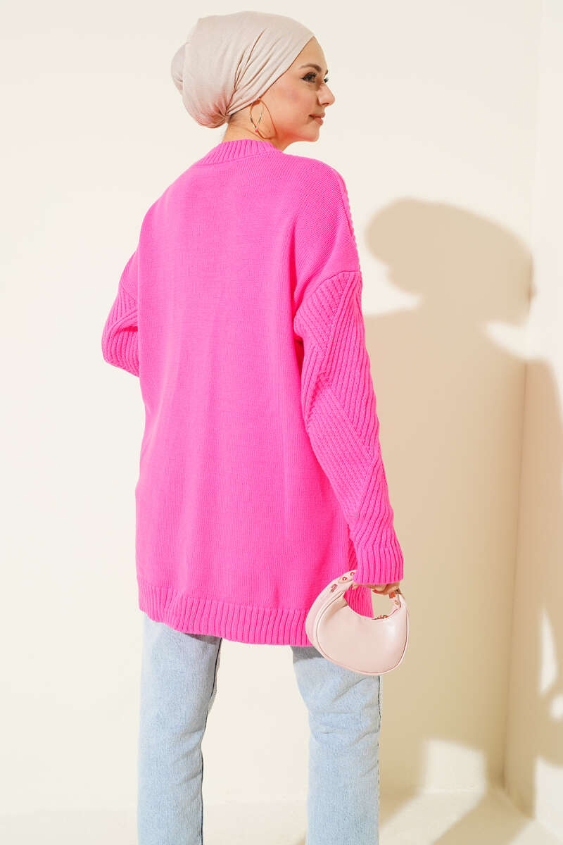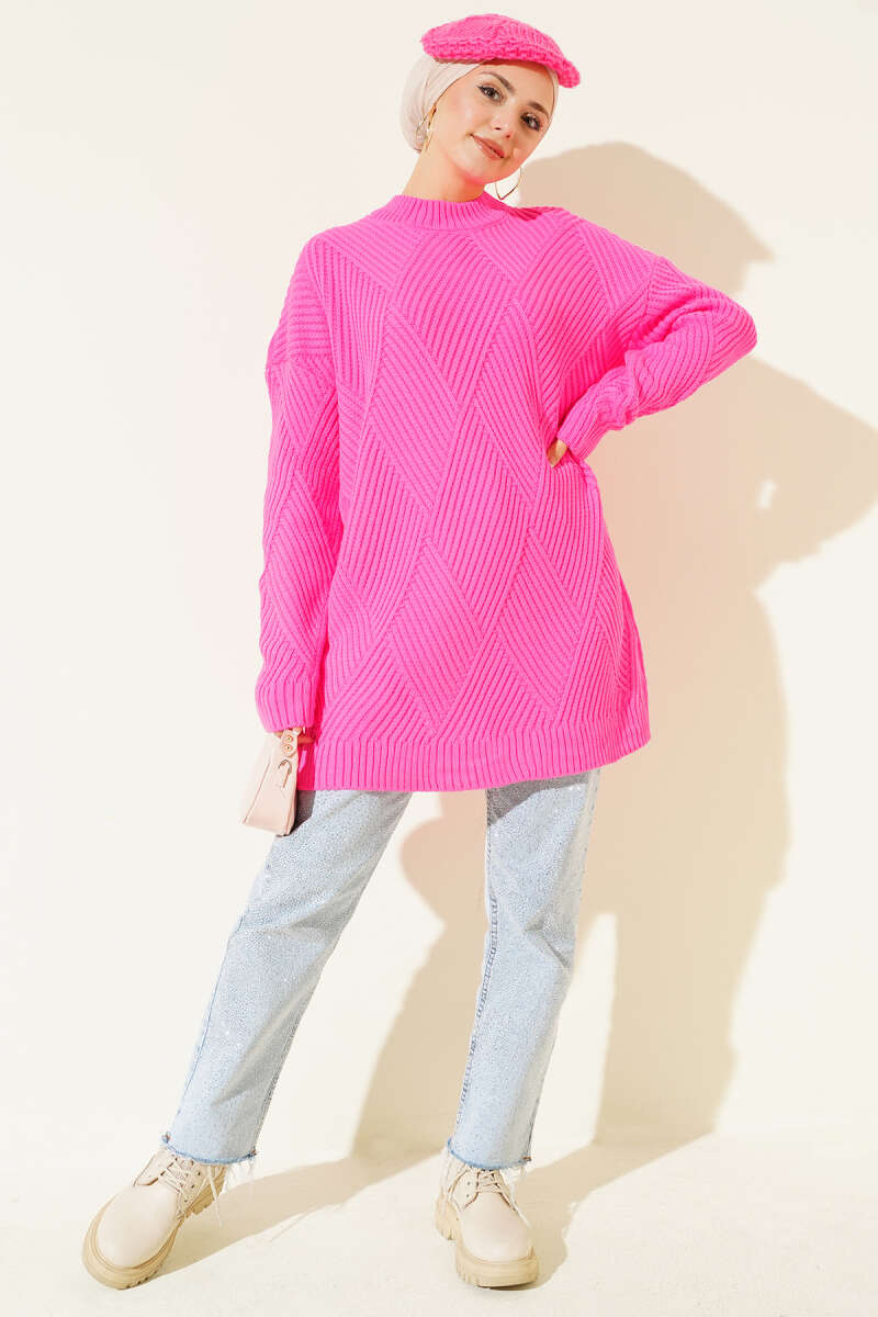 Çizgi Baklava Desen Triko Tunik Zümrüt