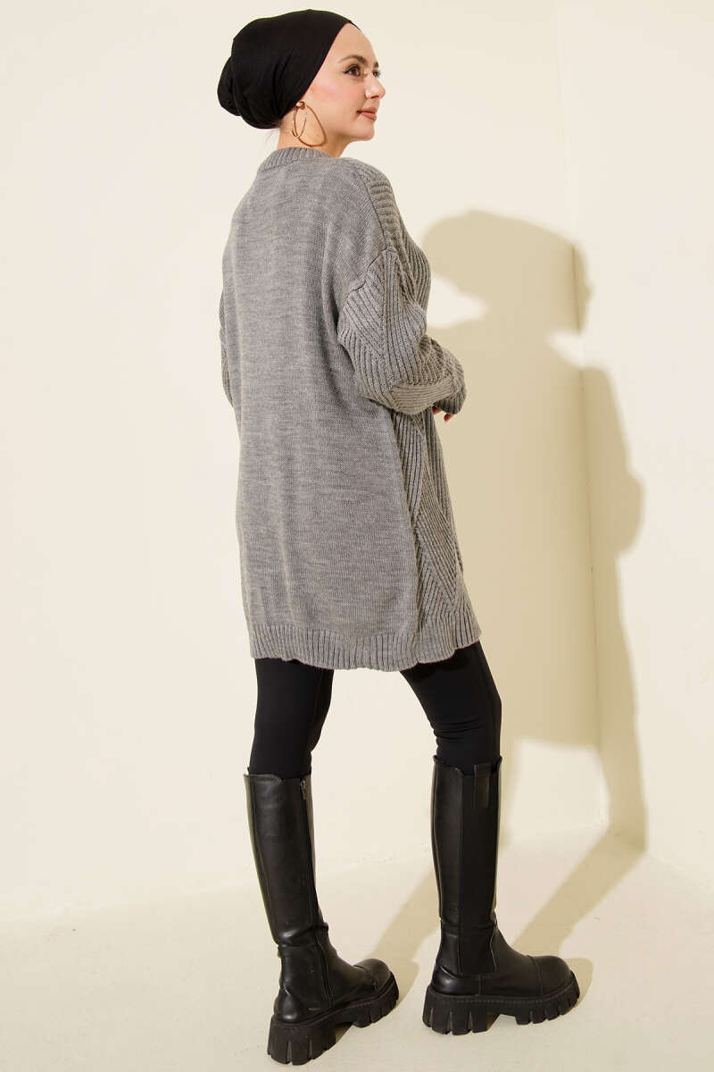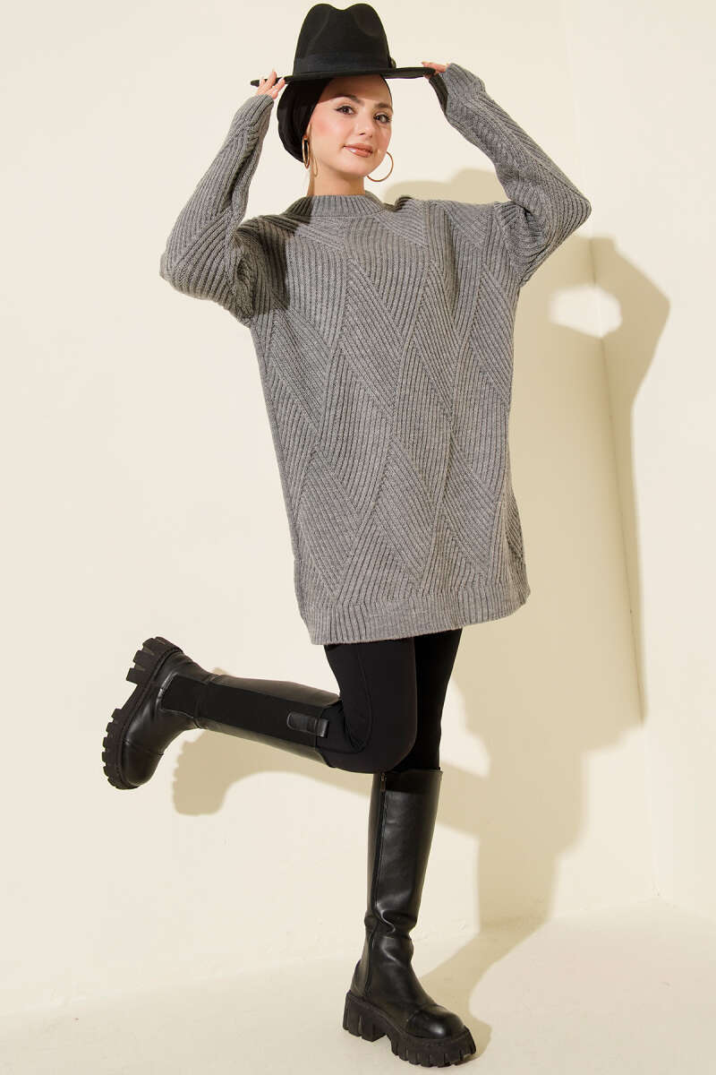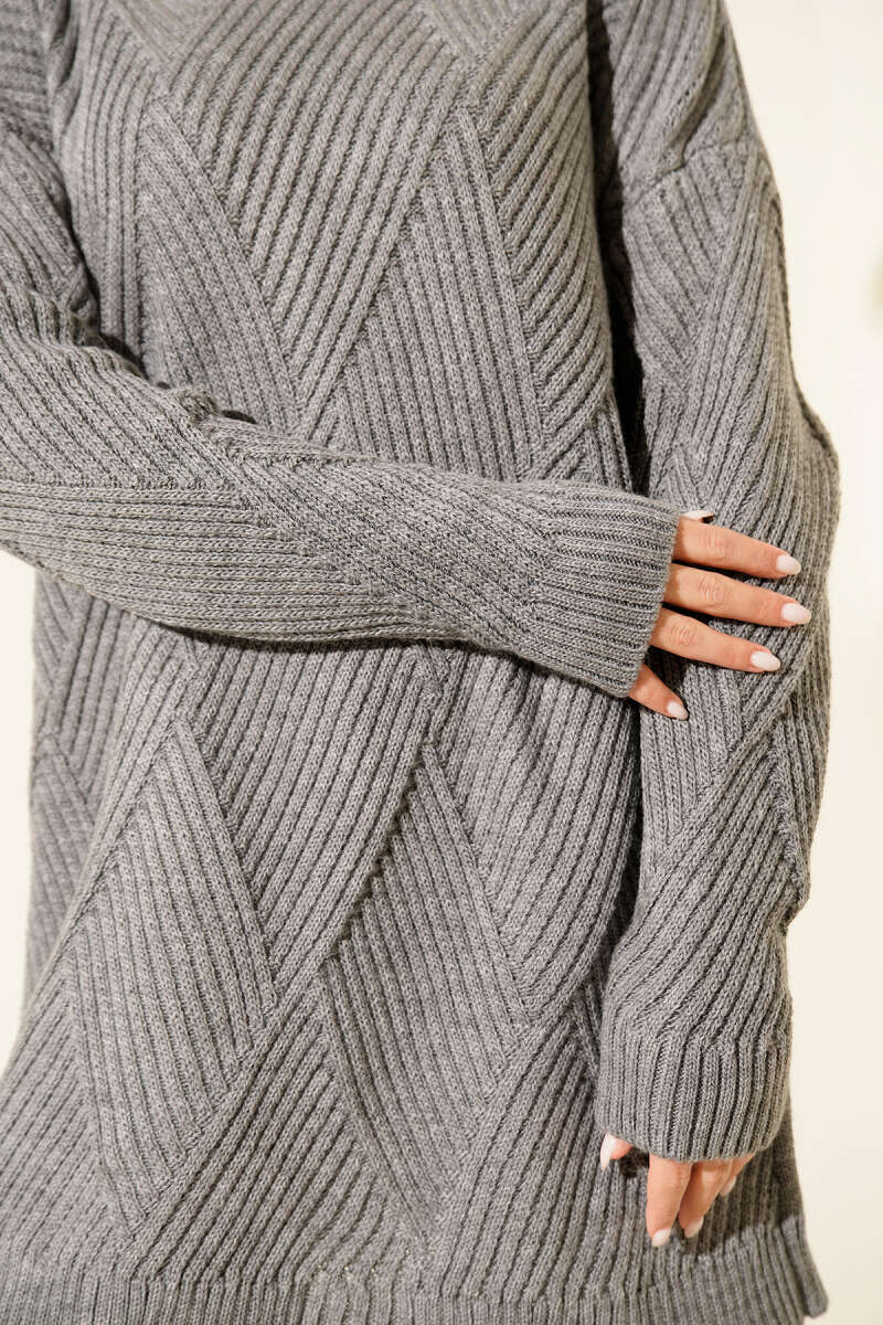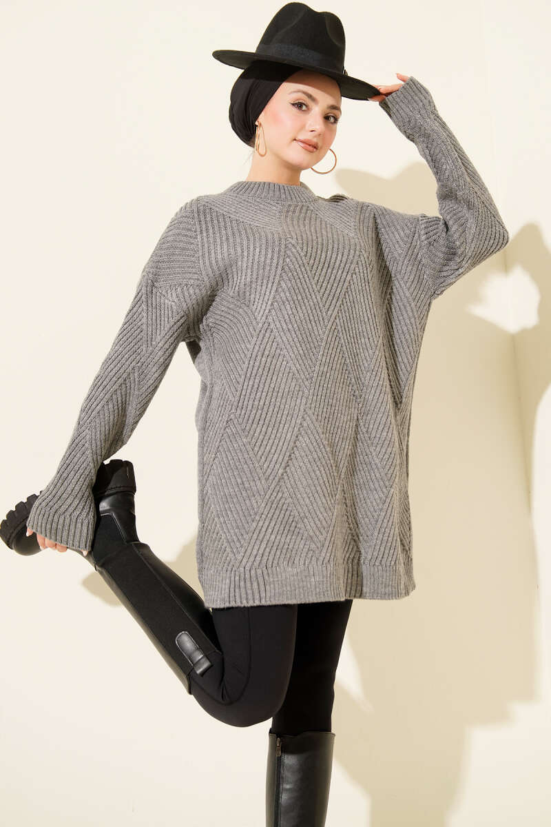 Balıkçı Yaka Parmak Geçirmeli Triko Kazak Gri