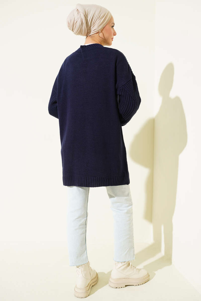 Serpme Taşlı Çizgili Sakallı Kazak Kahve