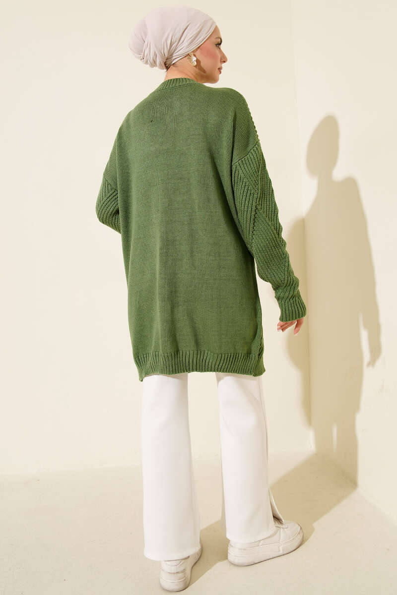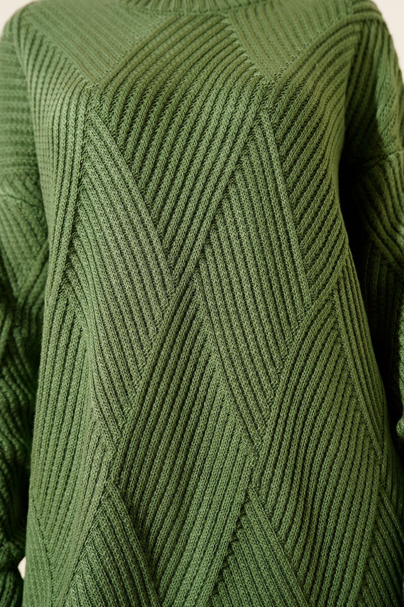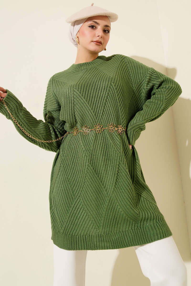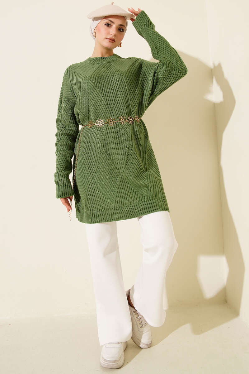 Baklava Desenli Basic Triko Tunik Yağ Yeşili