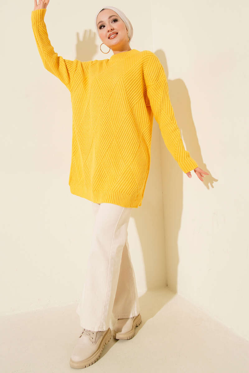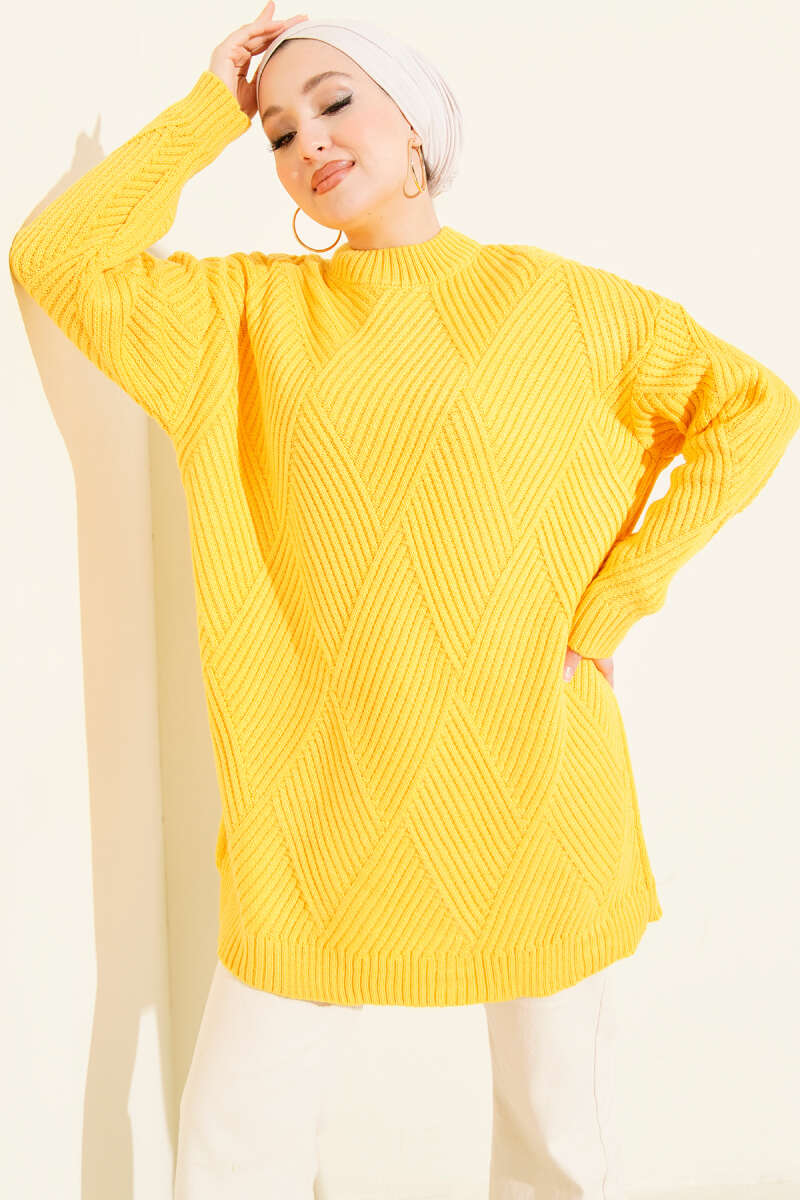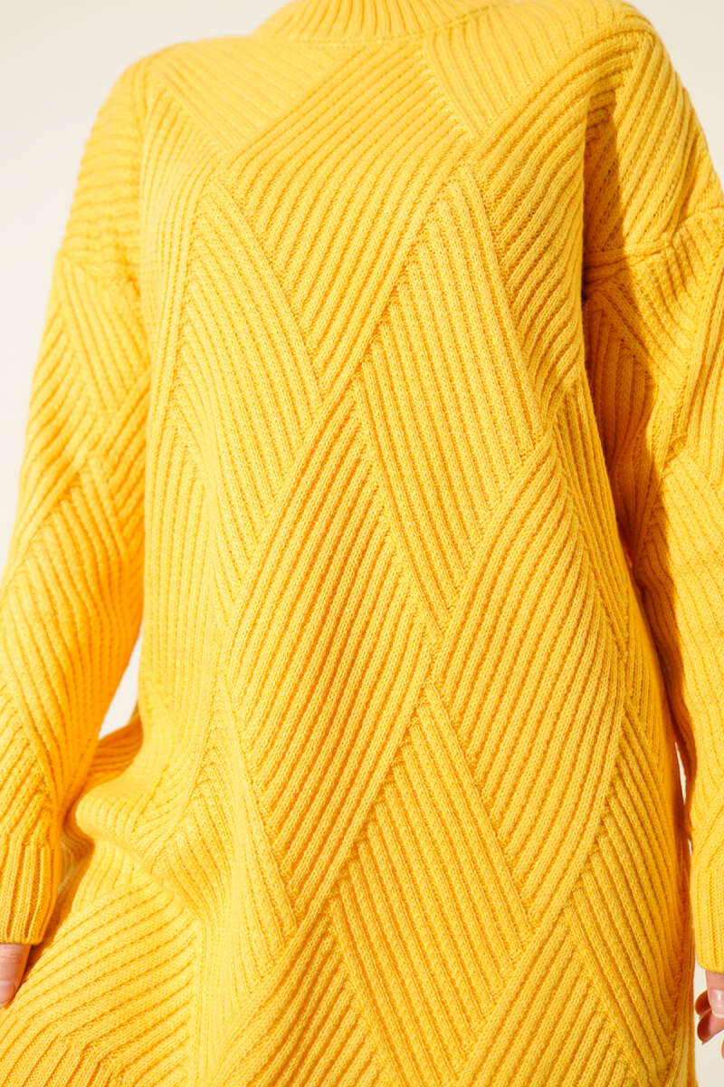 Bisiklet Yaka Fitilli Triko Elbise Taş
