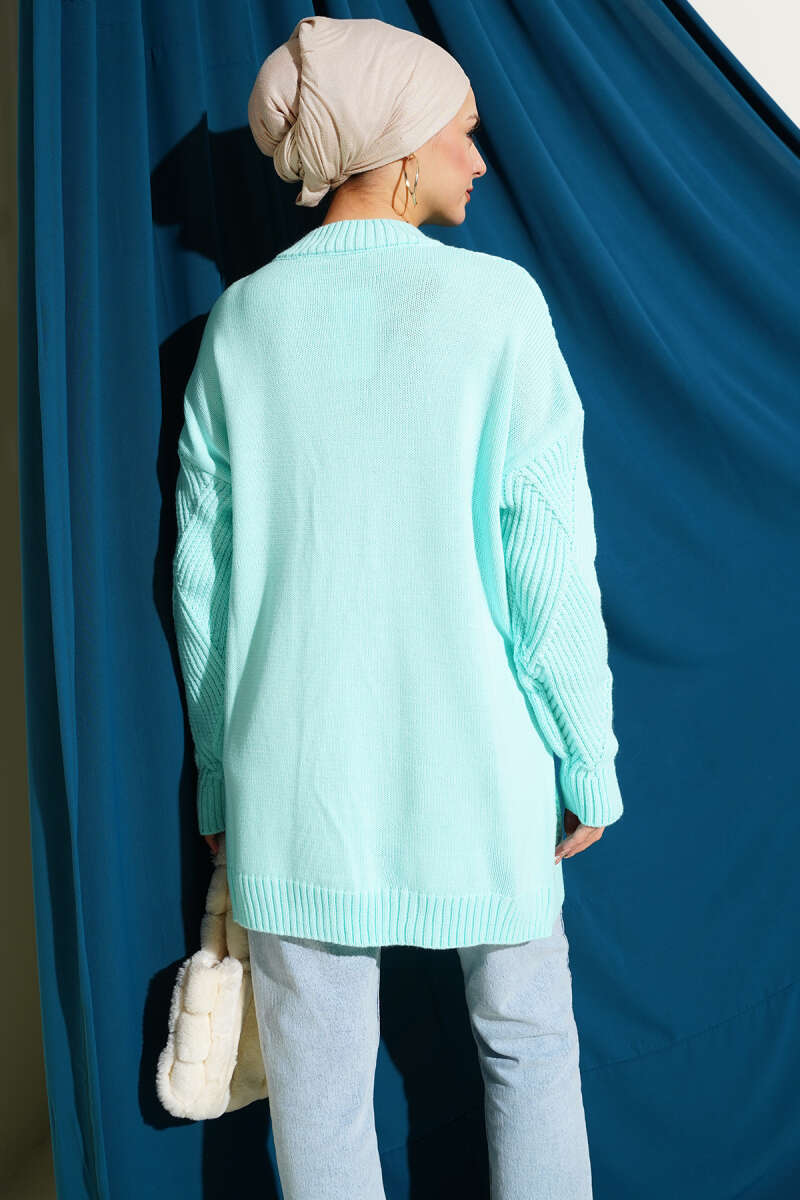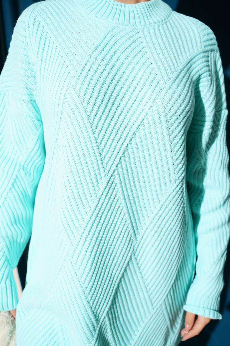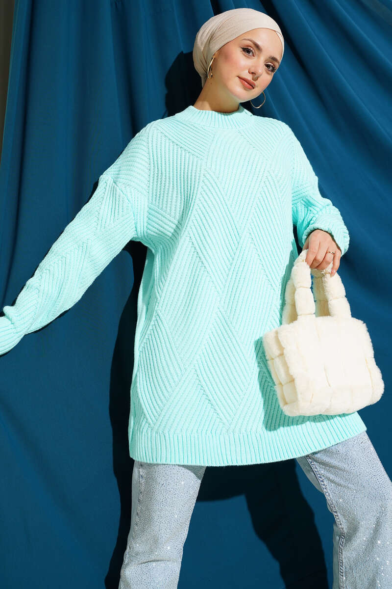 Çizgi Baklava Desen Triko Tunik Fıstık Yeşili