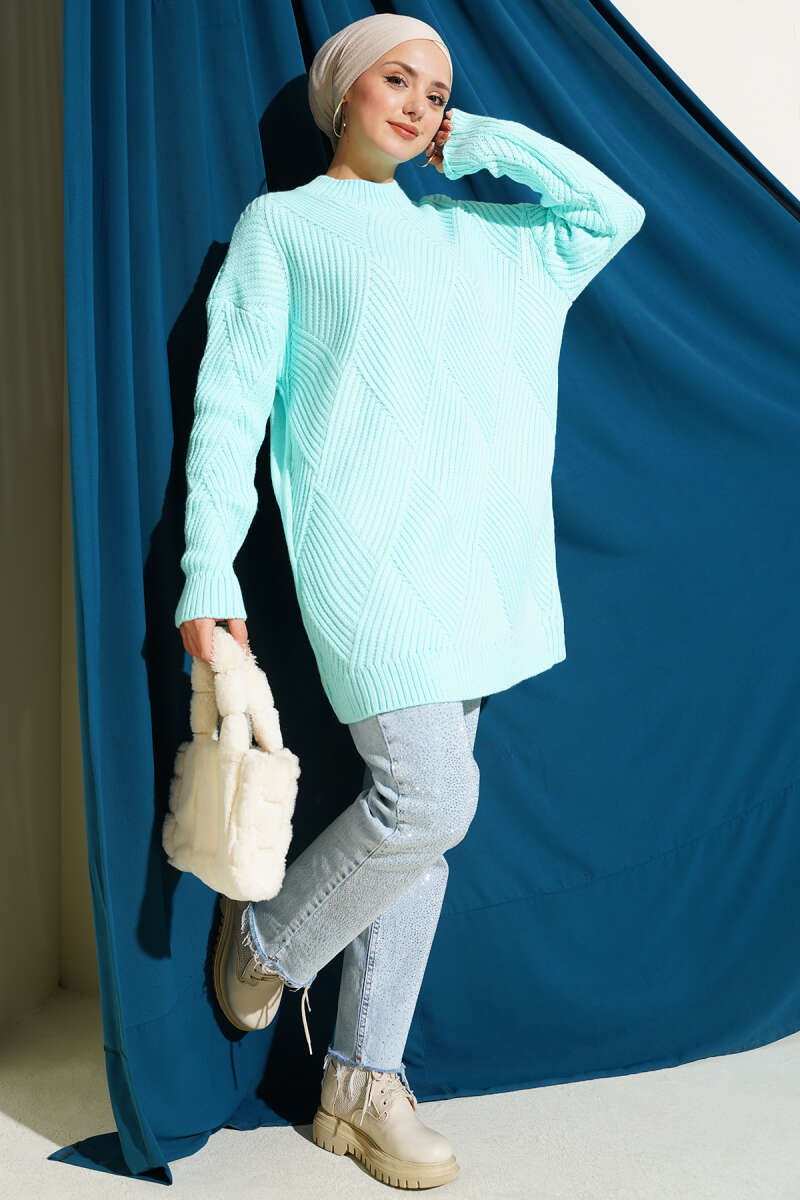 Çizgi Baklava Desen Triko Tunik Zümrüt