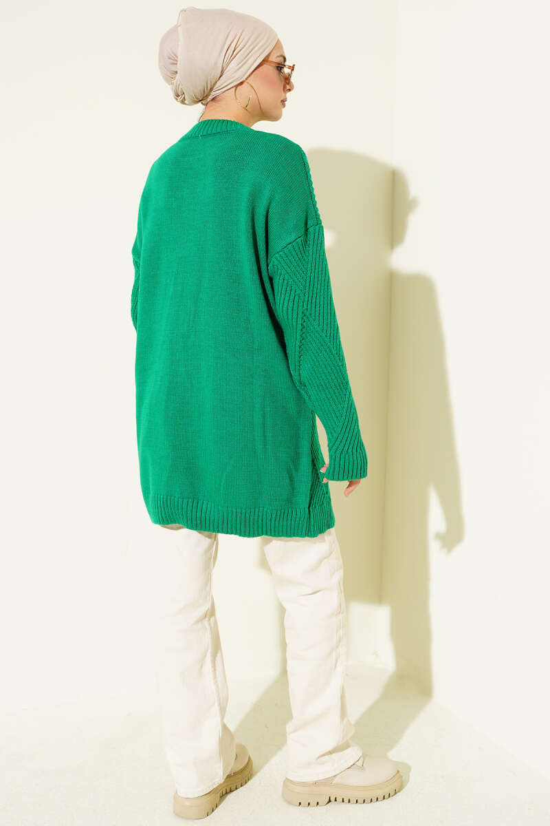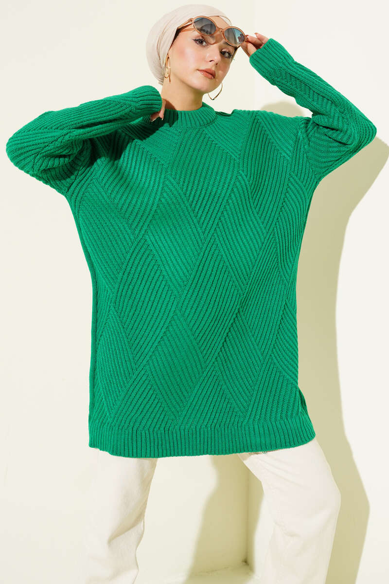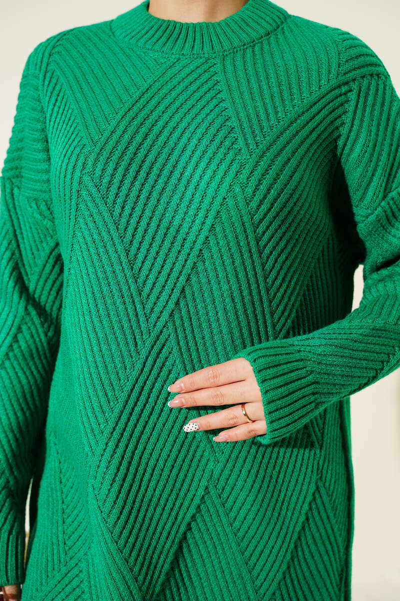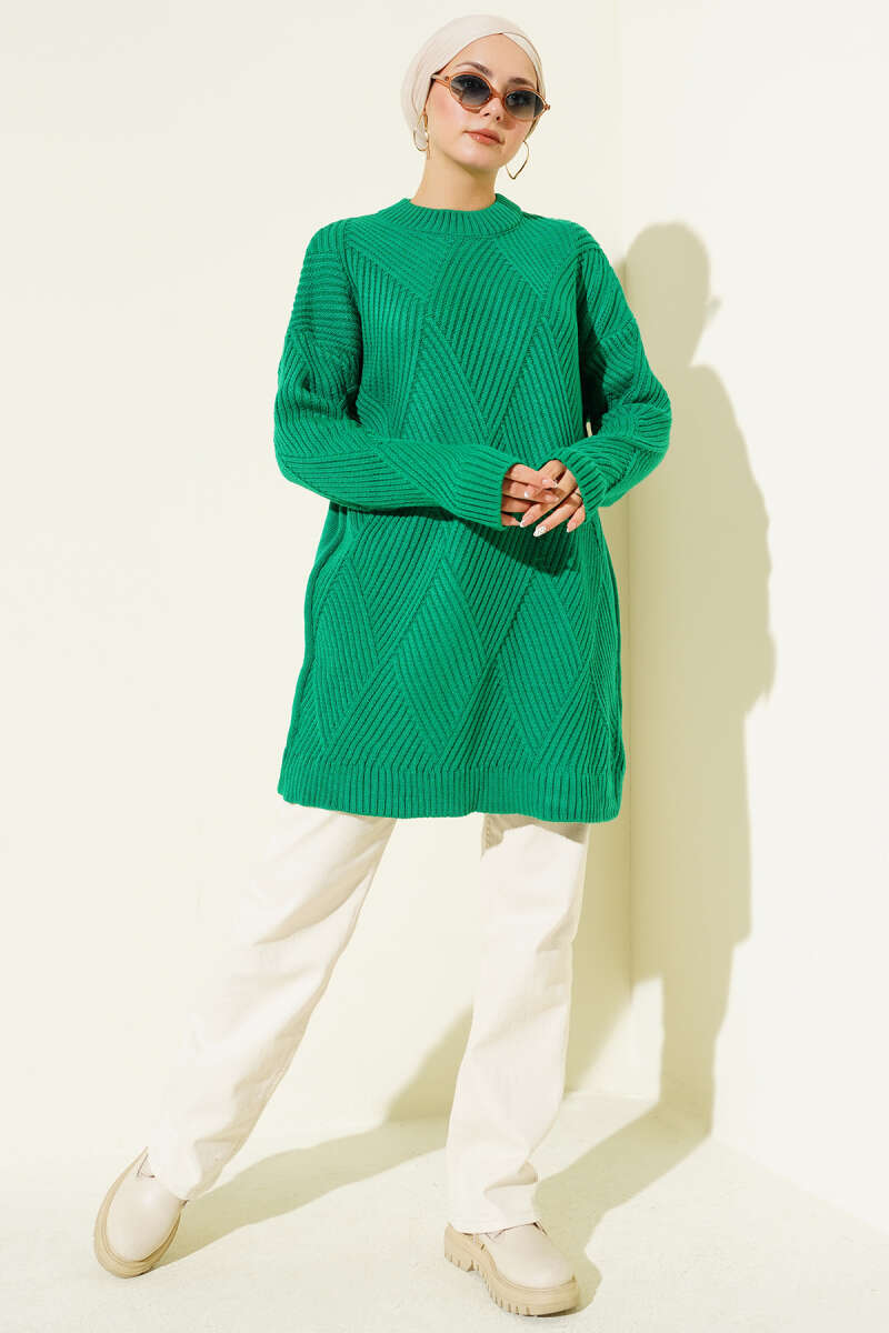 Çizgi Baklava Desen Triko Tunik Fıstık Yeşili