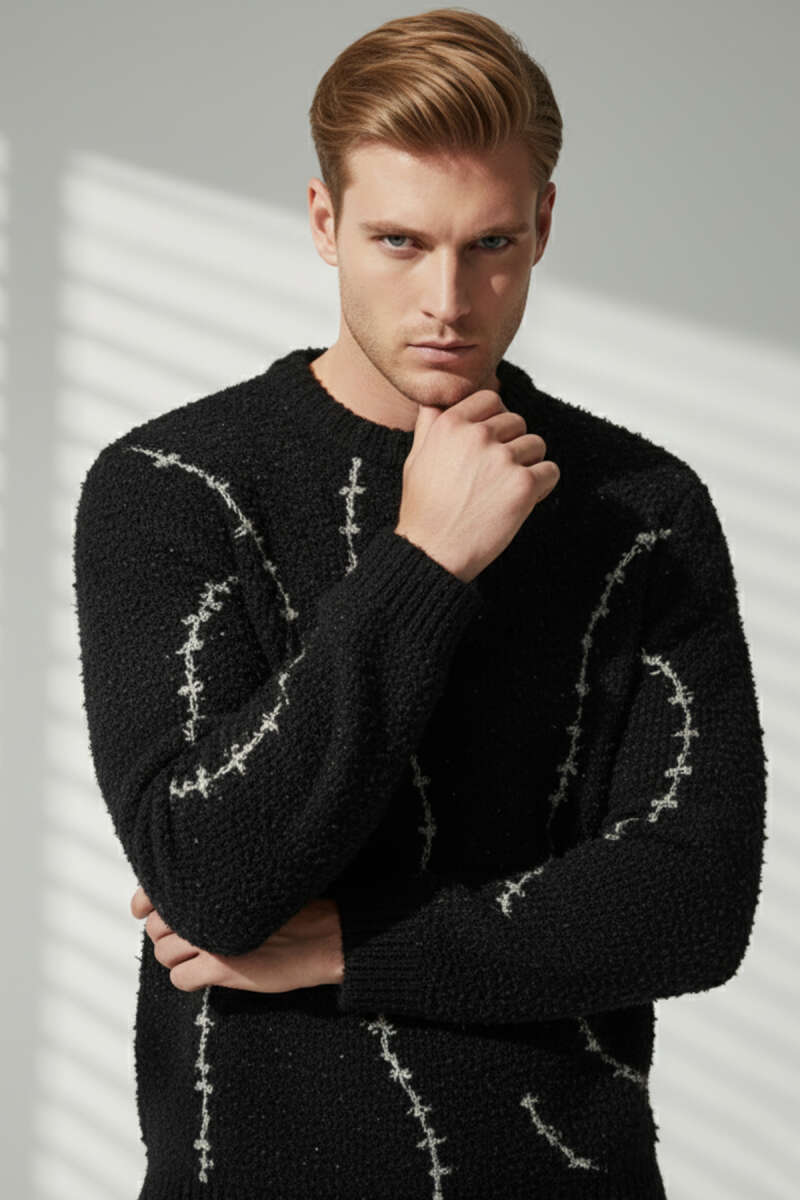 Yaka Fermuarlı Erkek Triko Kazak Siyah