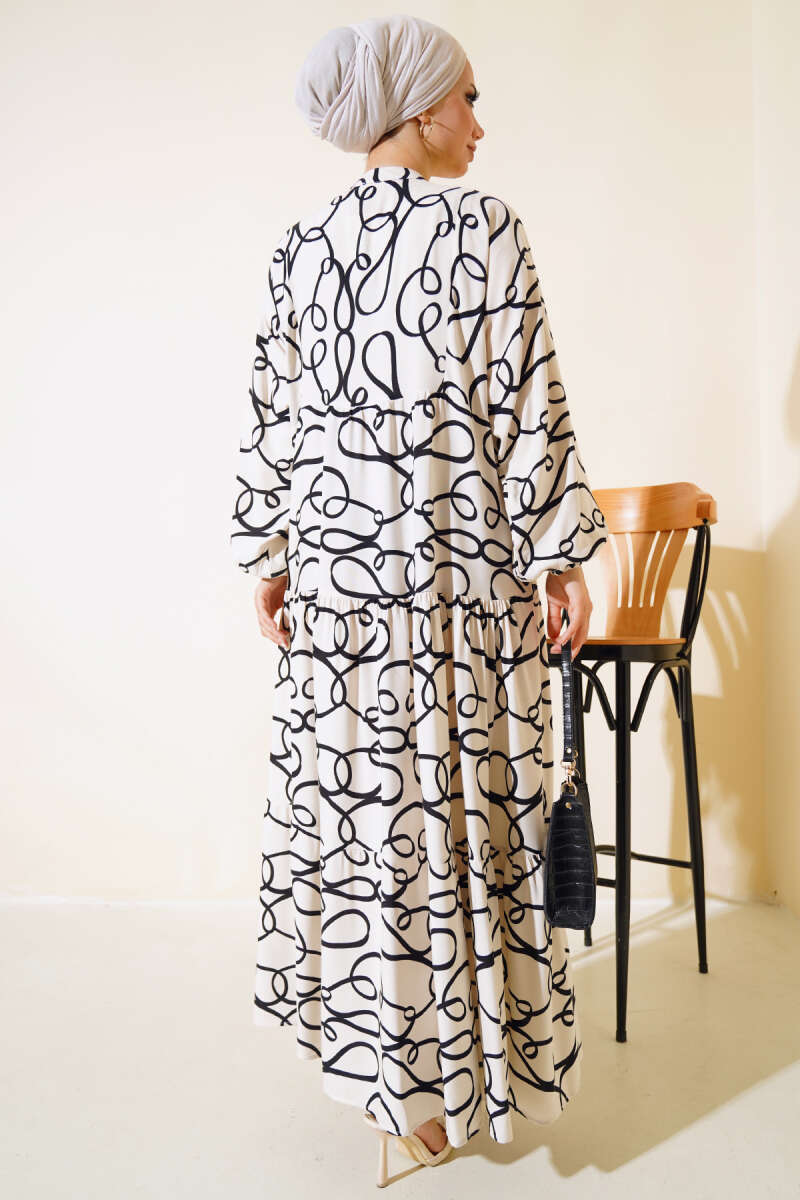 Yeni sezon elbise modelimiz sizlerle beraber. Elbisemiz yarım düğmelidir. Kol bilekleri lastiklidir. Salaş modeldir. Elbisemiz kat katdır. Astarsızdır. Yarasa koldur. Çizgi desenleriyle şıklık kazanan elbisemiz favoriniz olacaktır. Renk seçeneklerimiz mevcuttur.
