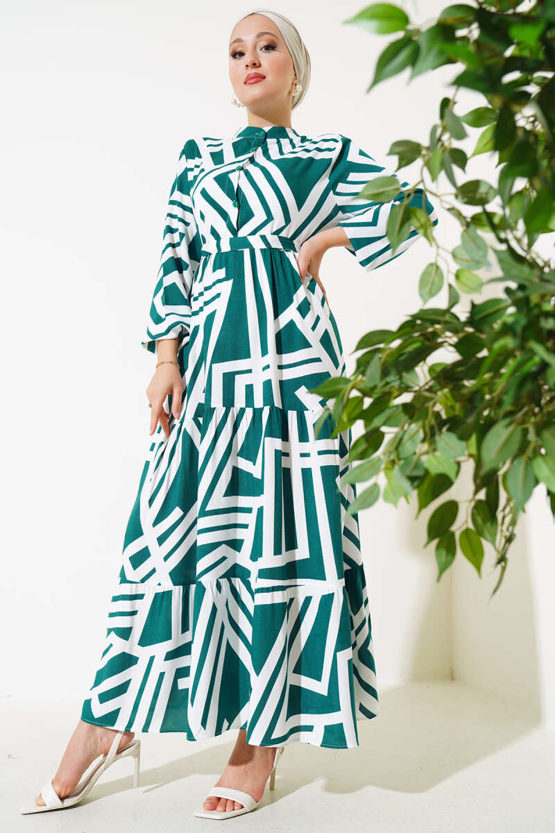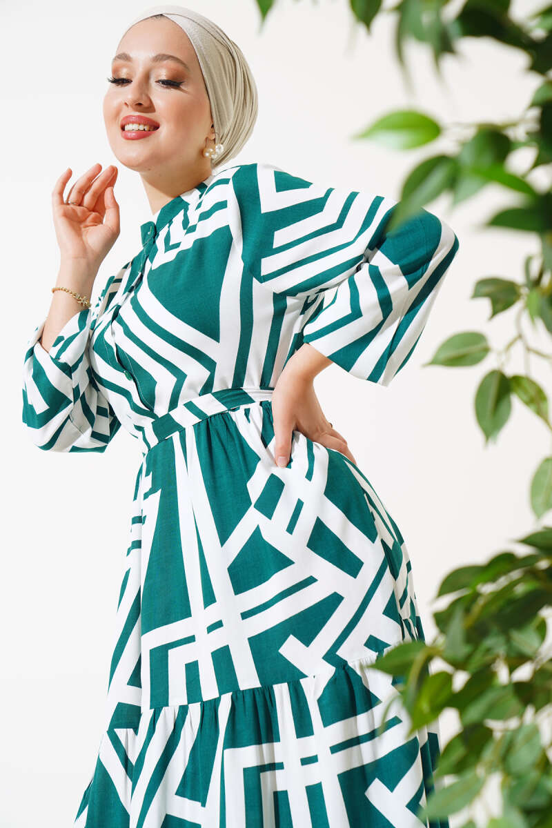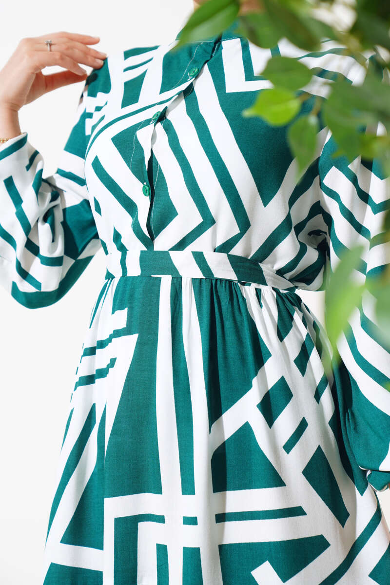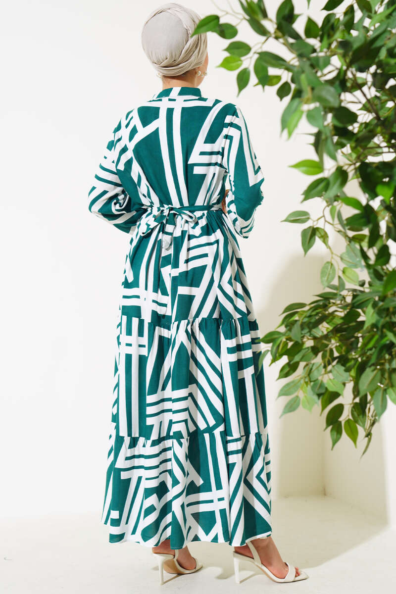 Kol Ucu Armalı İp Bağcıklı Elbise Yeşil