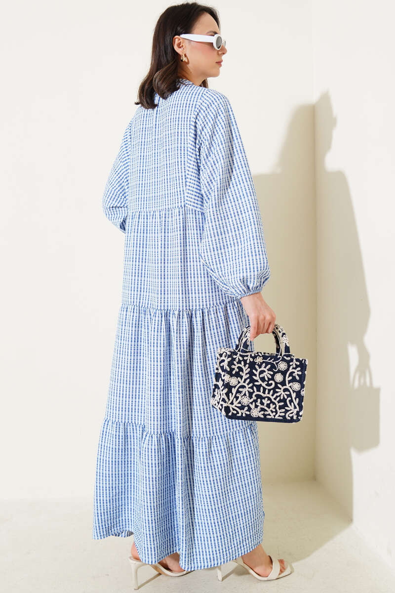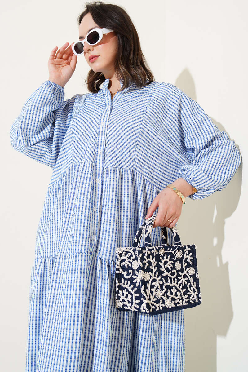 Şerit Ajur Desen Triko Elbise Bebe Mavi