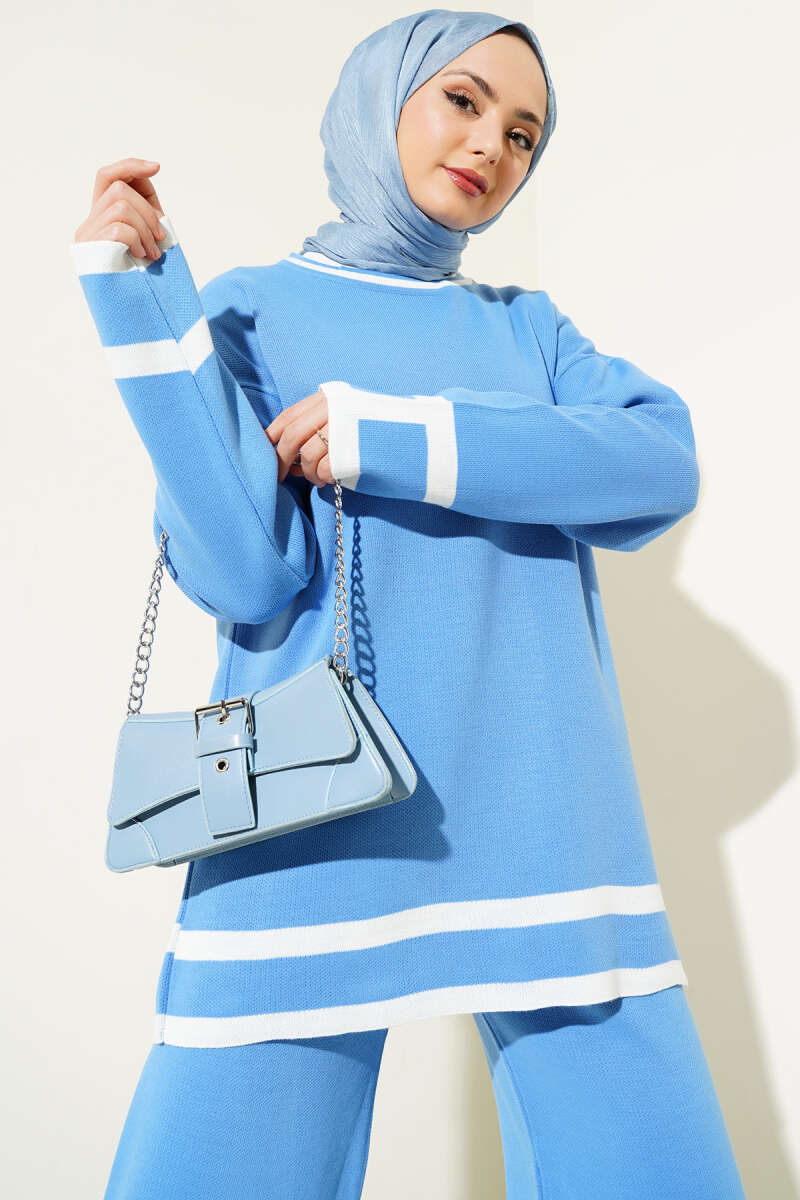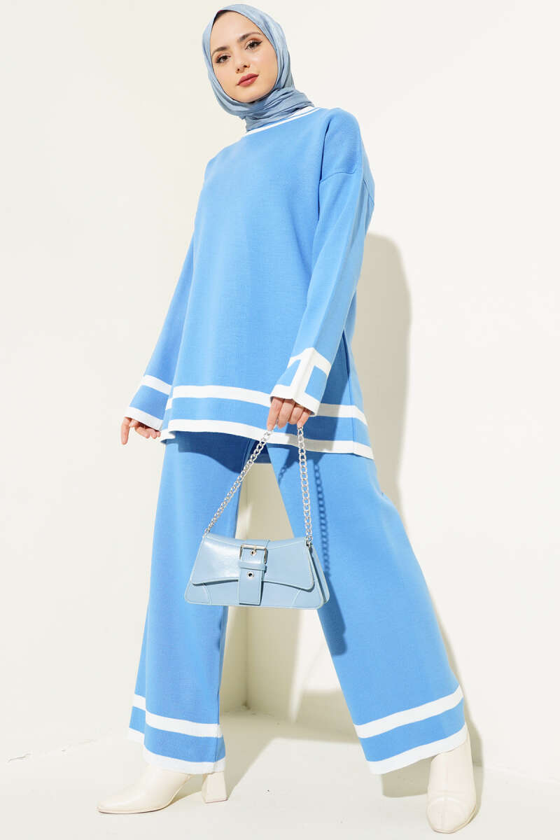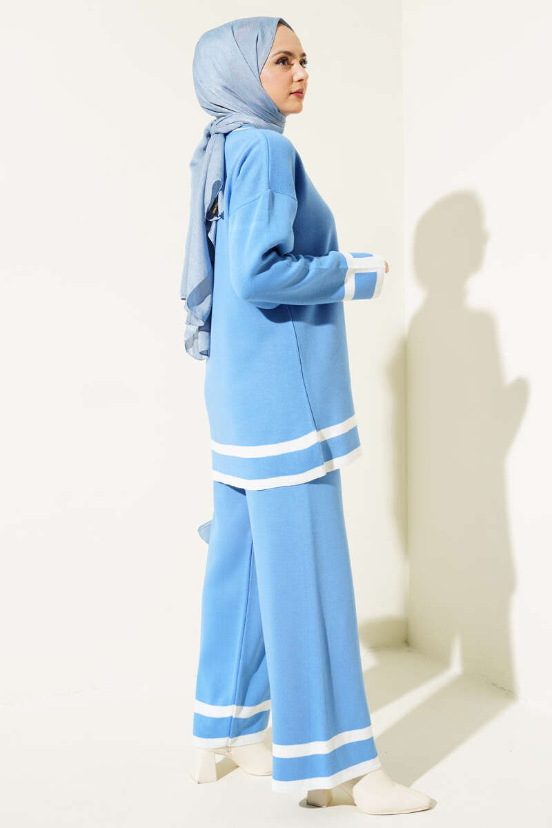 Çizgi Detaylı Basic Triko İkili Takım İndigo