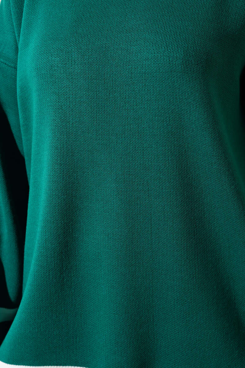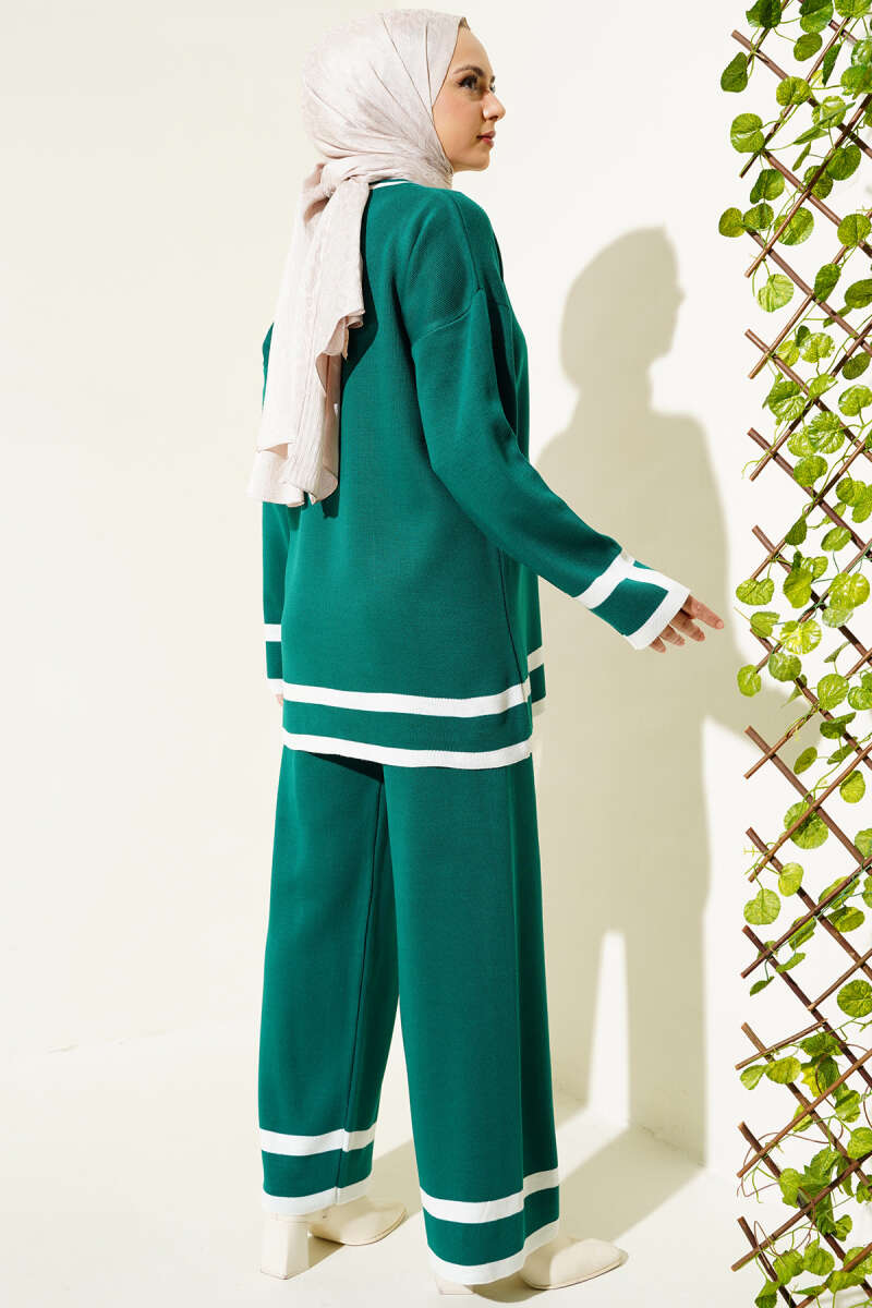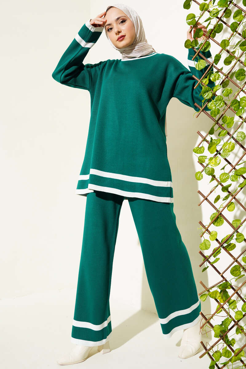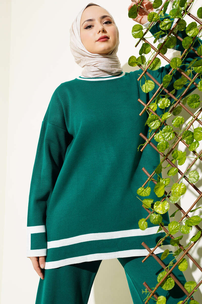 Çizgi Detaylı Basic Triko İkili Takım Zümrüt