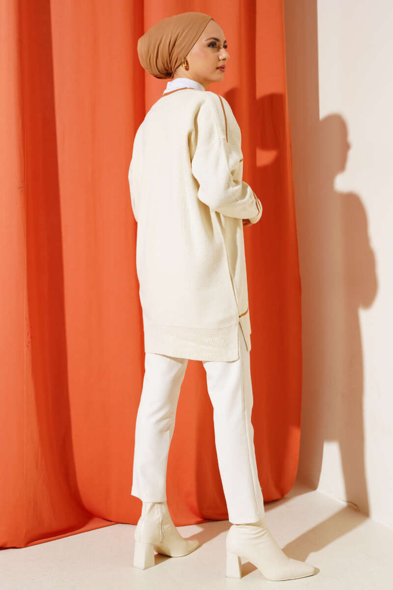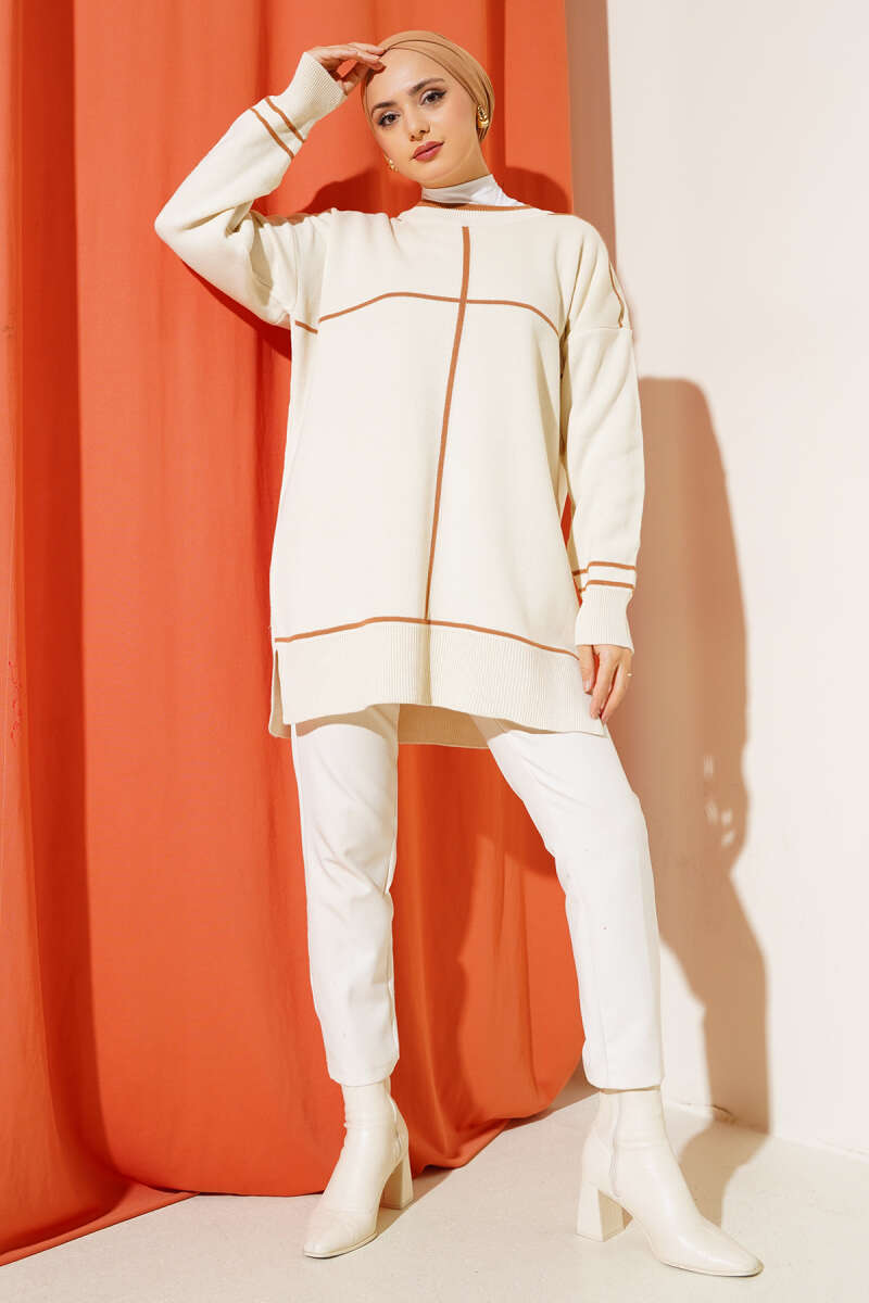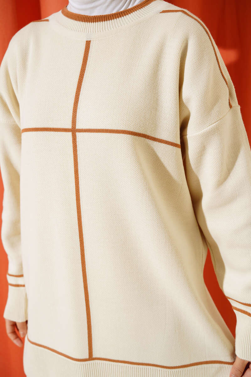 Çizgi Detaylı Basic Triko Tunik Bej