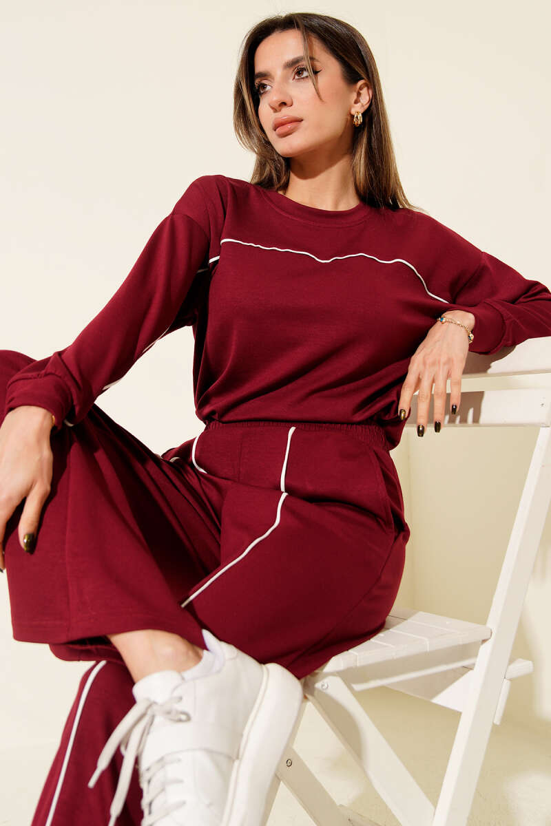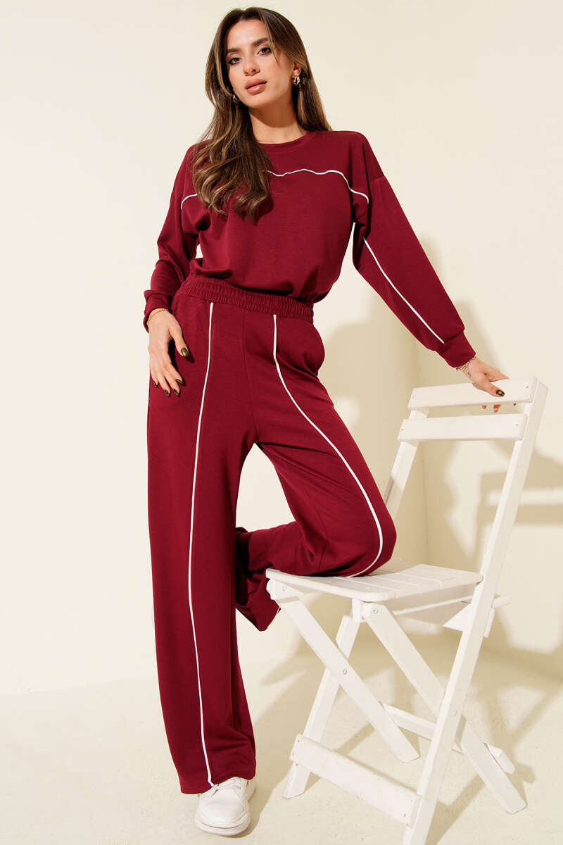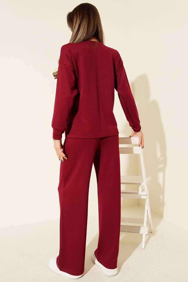 Taş Fiyonklu Kimono İkili Takım Bordo
