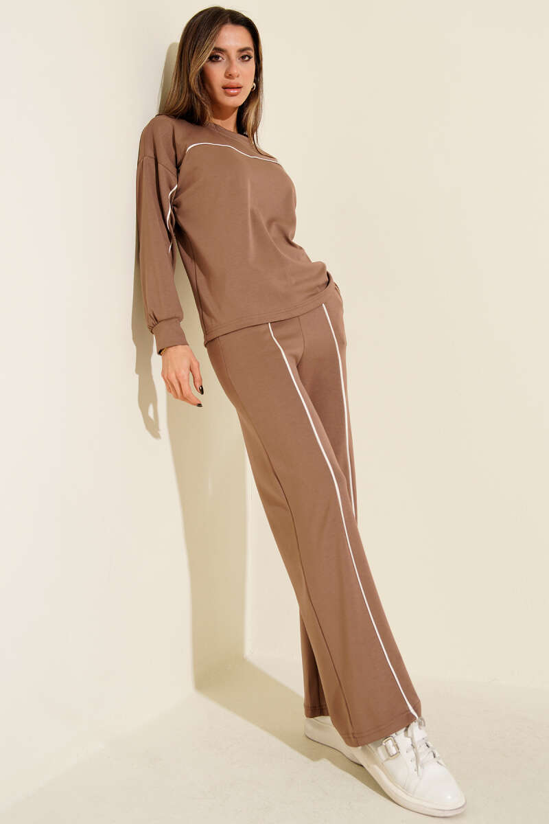 Fitilli Gold Bronş Detaylı Triko İkili Takım Acı Kahve