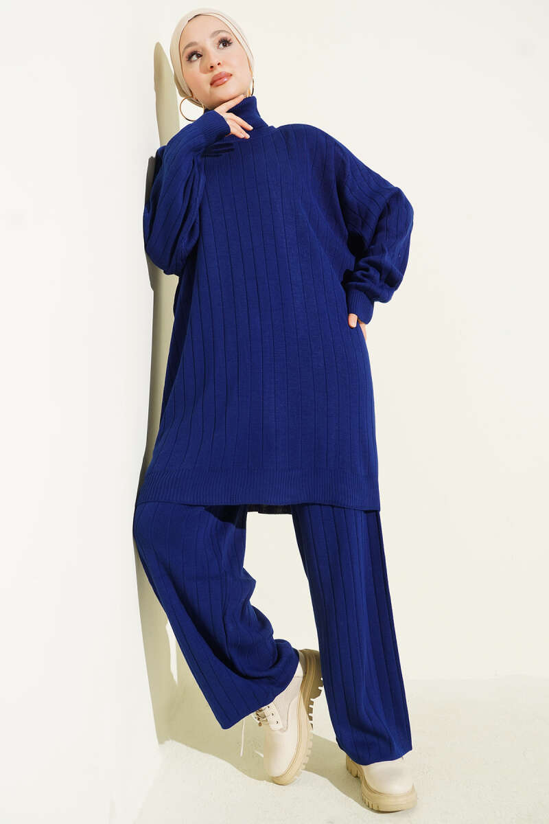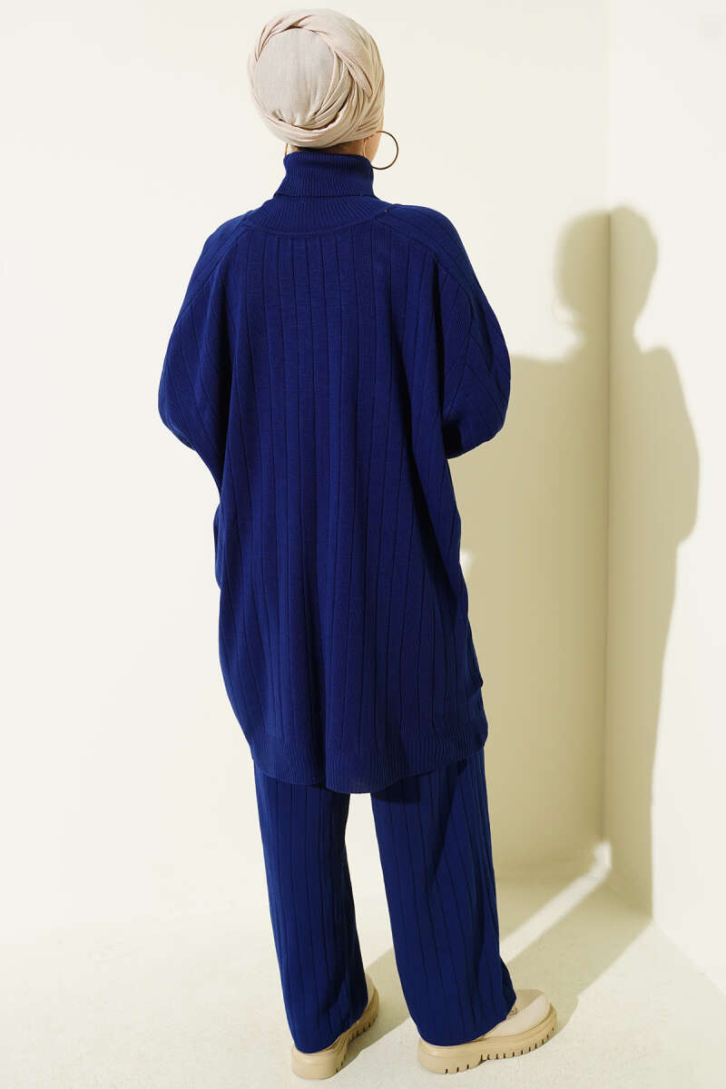 Kruvaze Yelekli İkili Triko Takım Mavi
