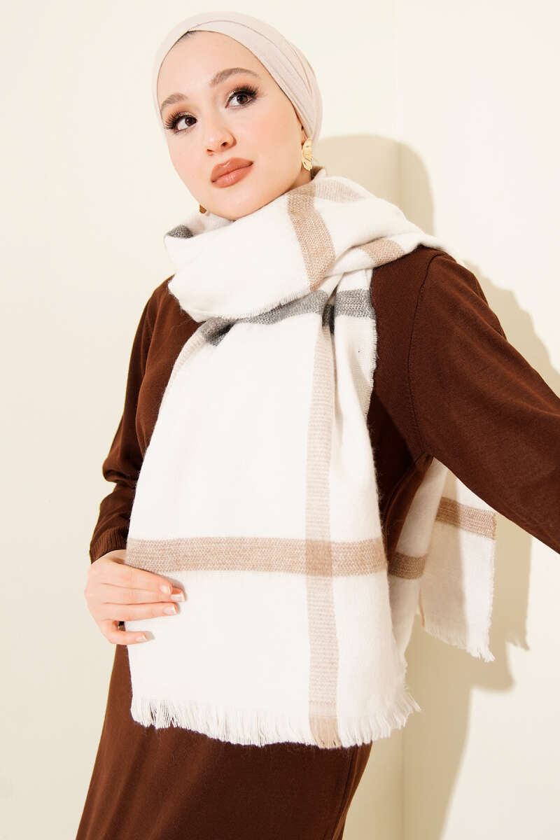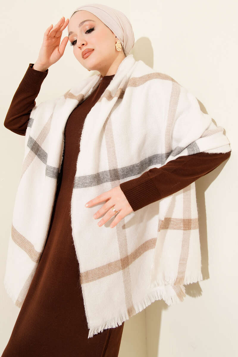 Çizgi Detaylı Omuz Şalı Zümrüt