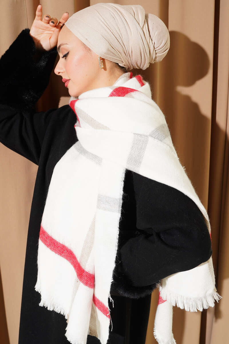 Çizgi Detaylı Omuz Şalı Zümrüt