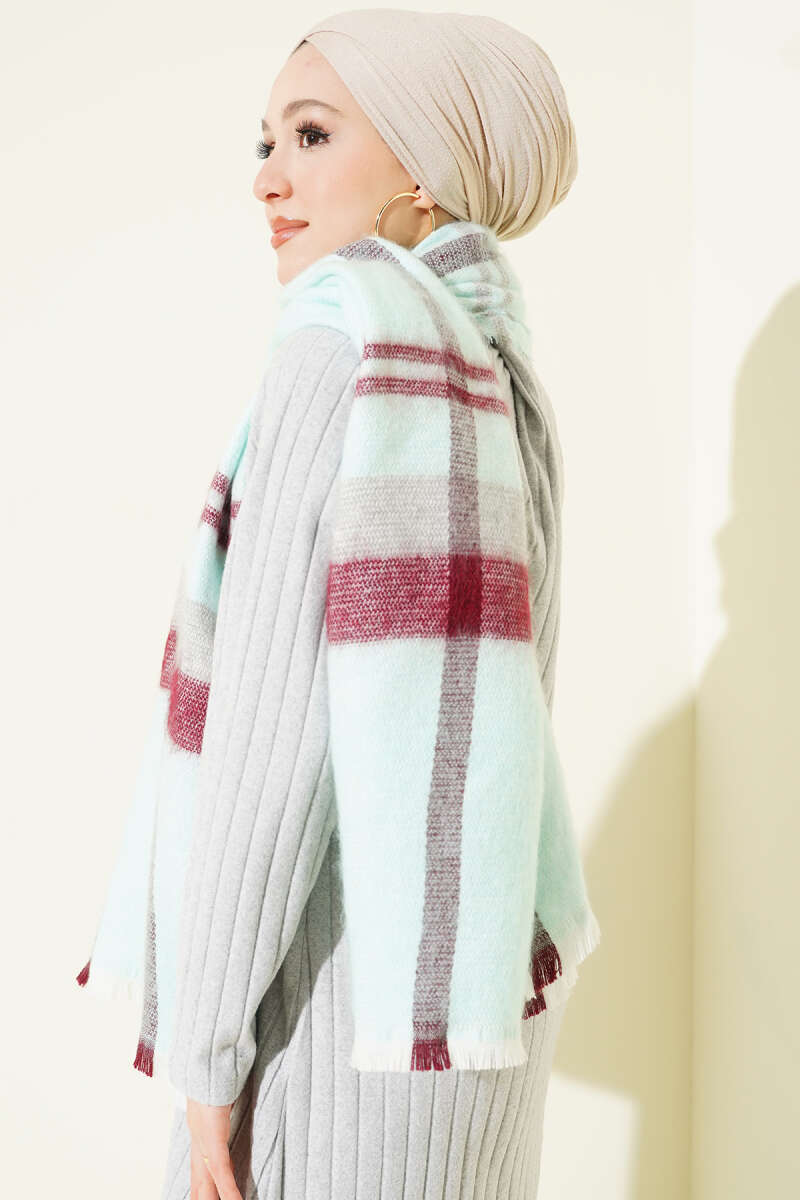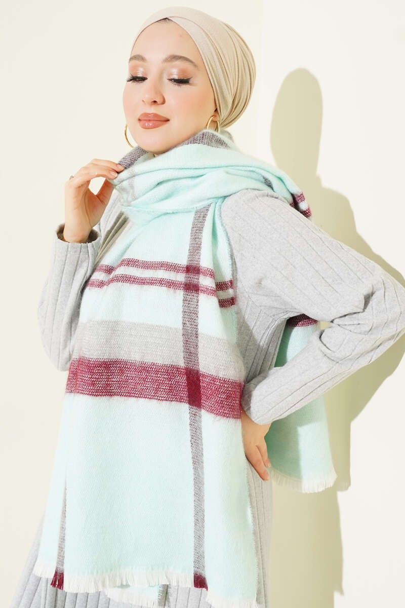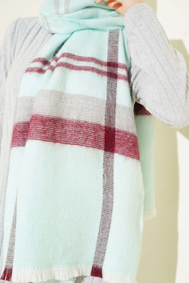 Çizgi Detaylı Omuz Şalı Zümrüt