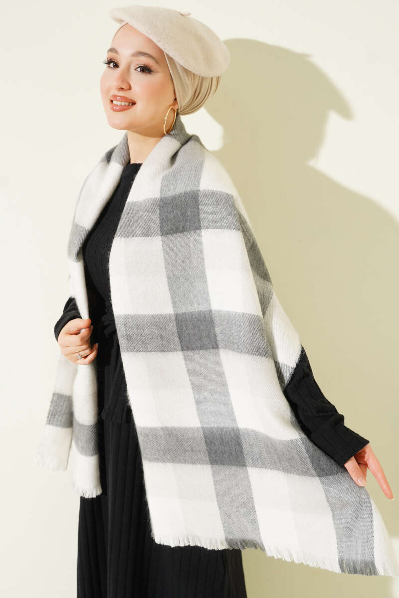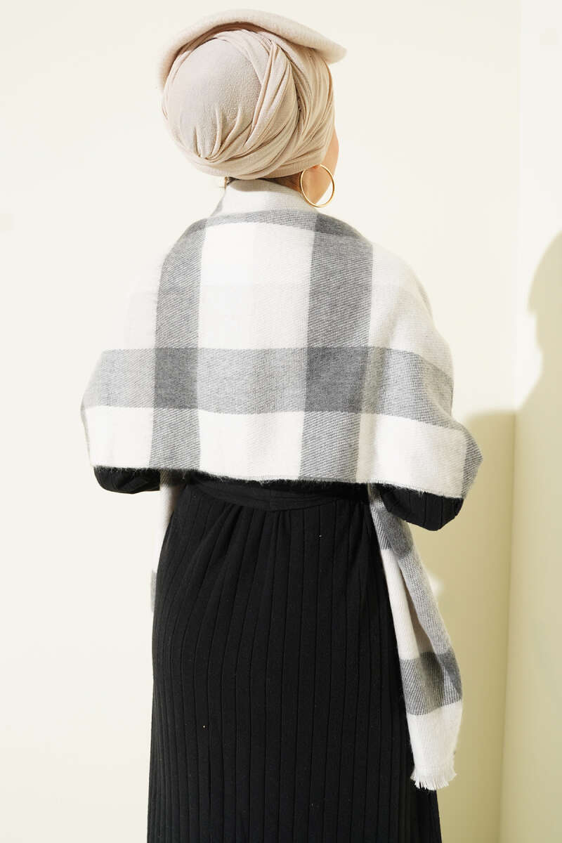 Çizgi Detaylı Omuz Şalı Zümrüt