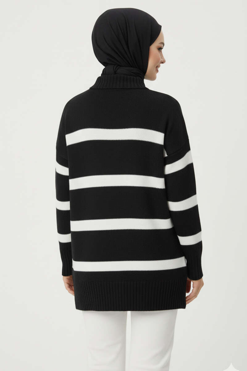 Basic Dikey Çizgi Detaylı Triko Kazak Siyah