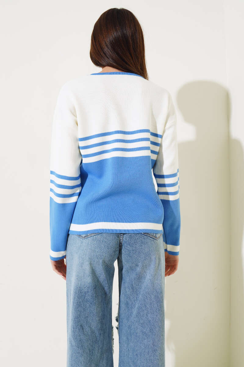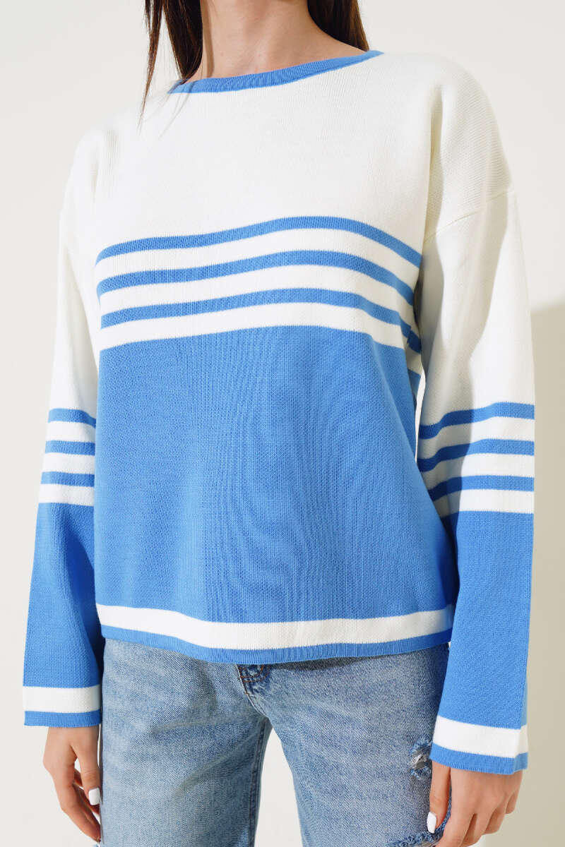 Çizgi Detaylı Triko Kazak İndigo