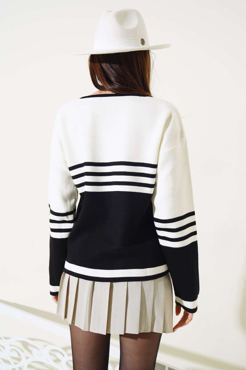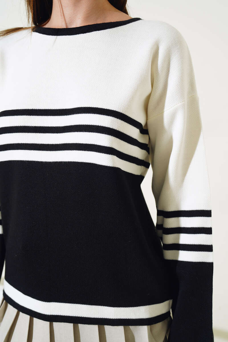 Çizgi Detaylı Triko Kazak Siyah