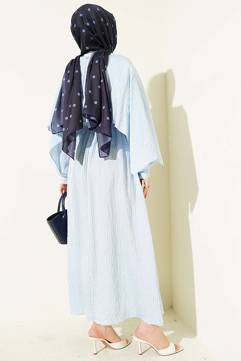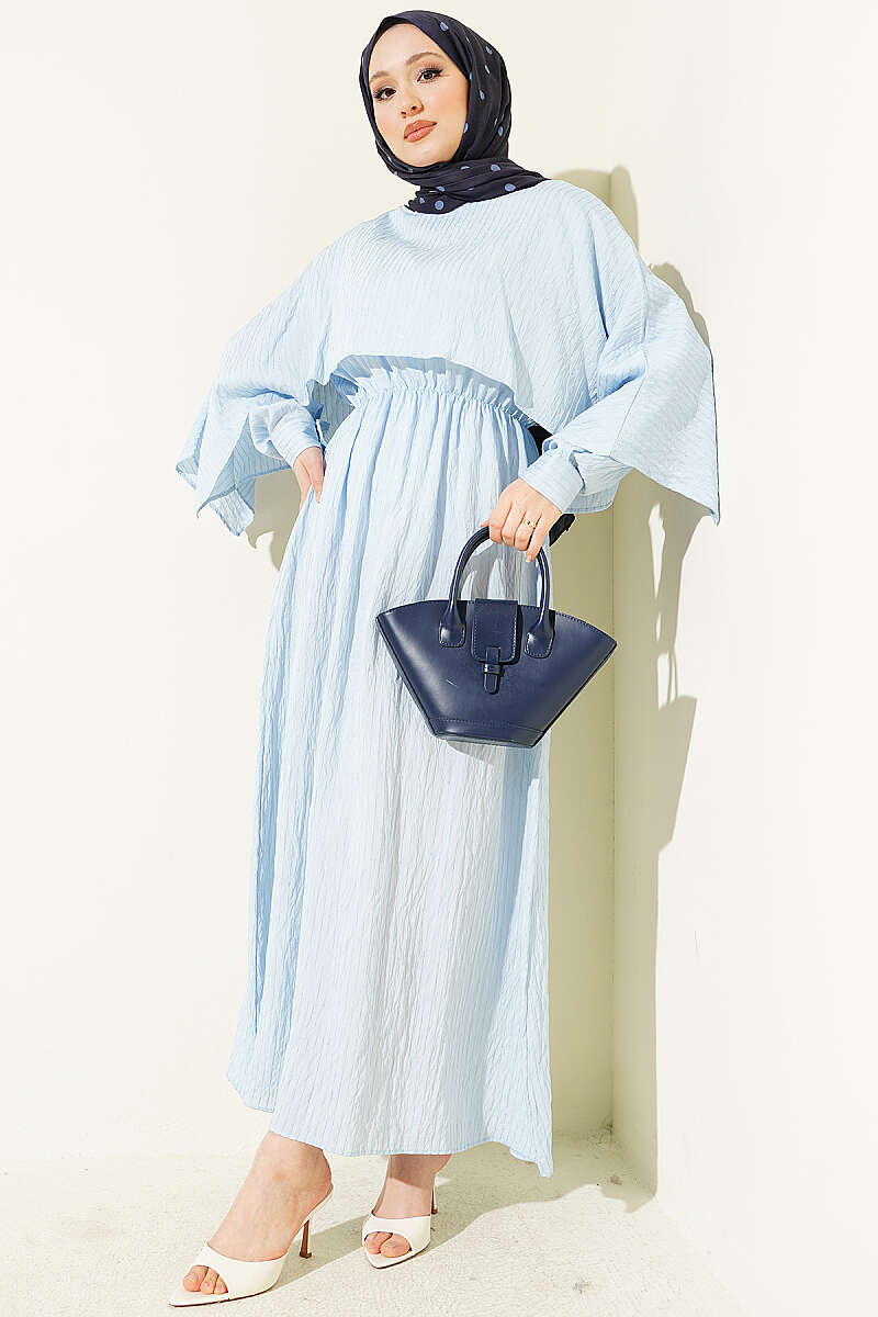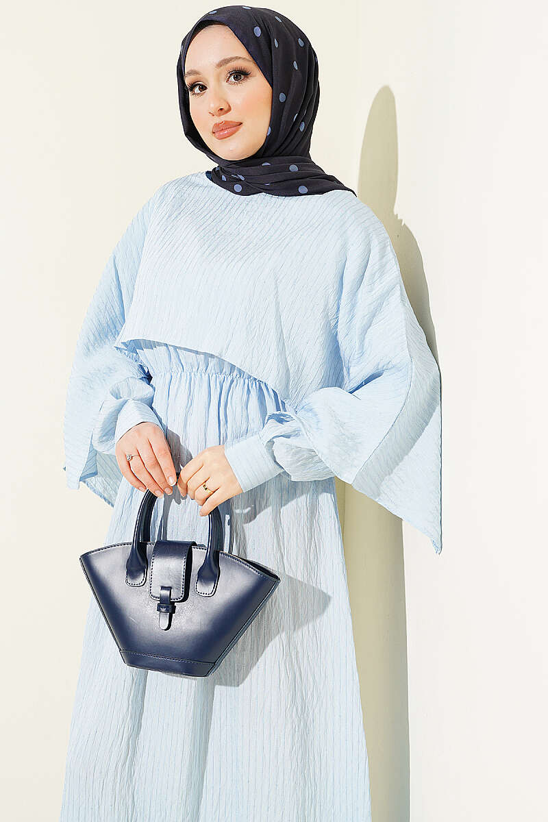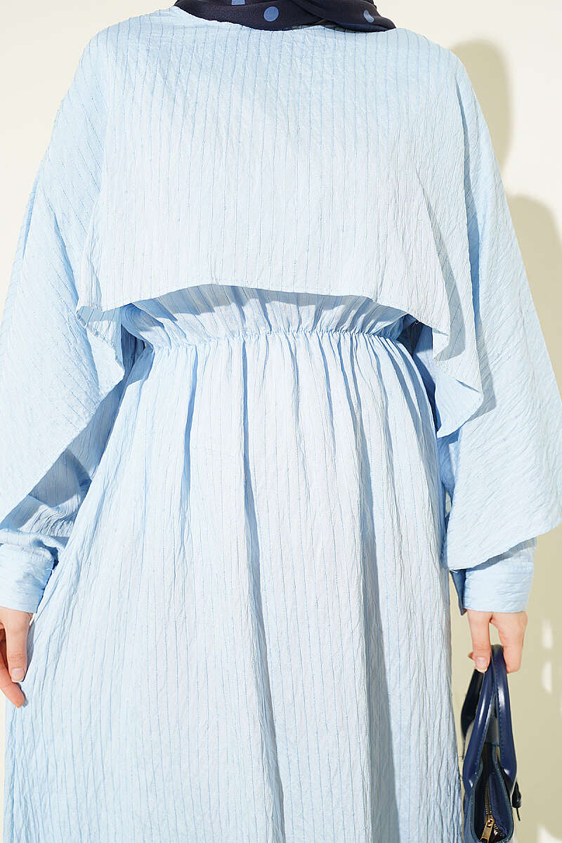 Çizgi Dikişli Bel Lastikli Pelerinli Elbise Bebe Mavi