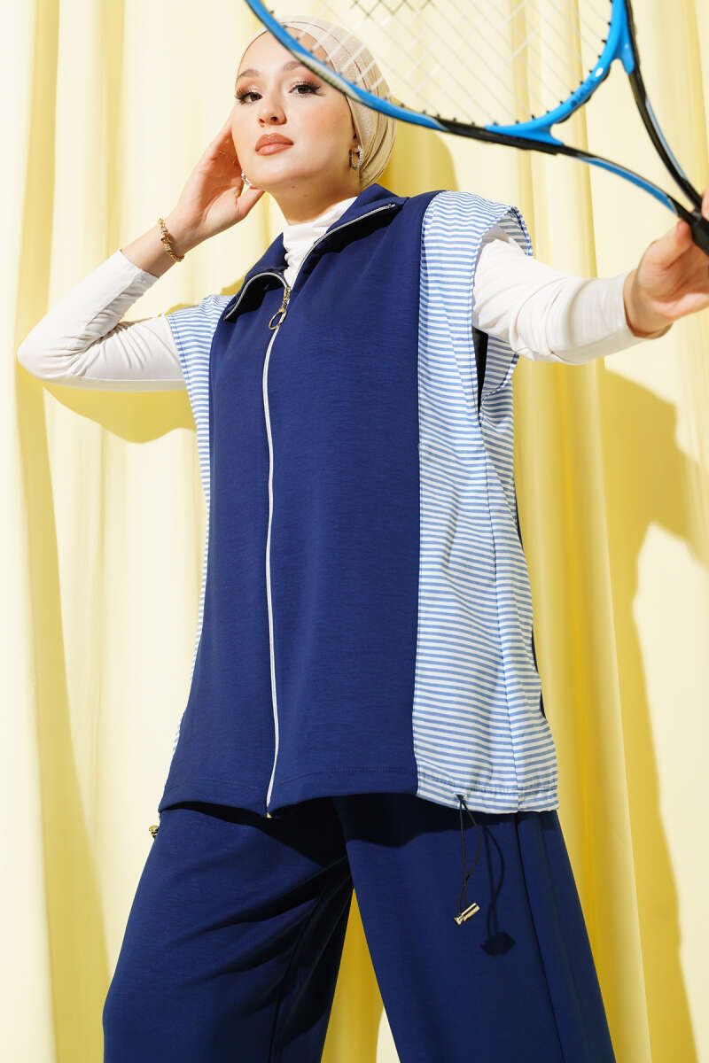 Kapüşonlu Uzun Tunik İkili Takım Lacivert
