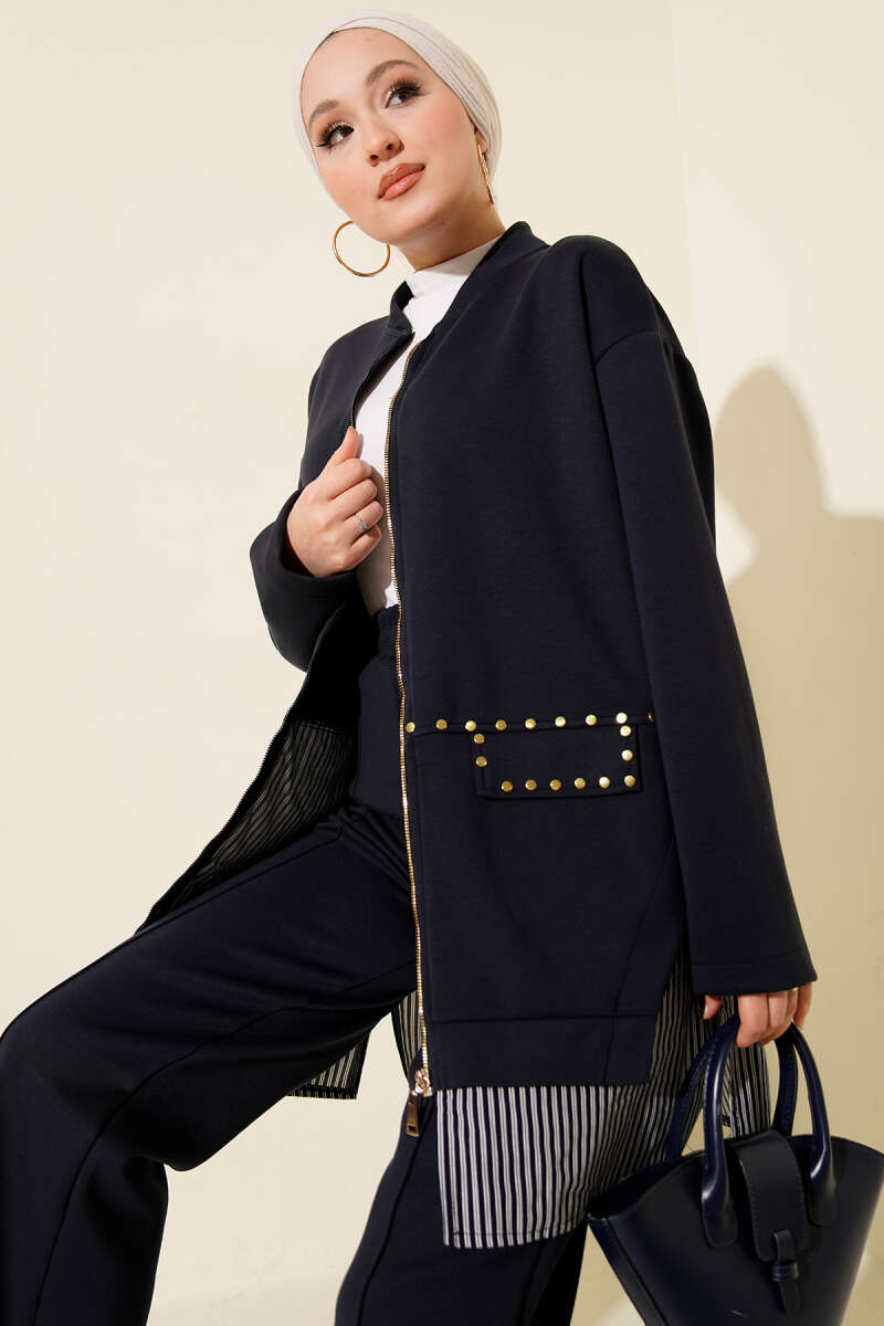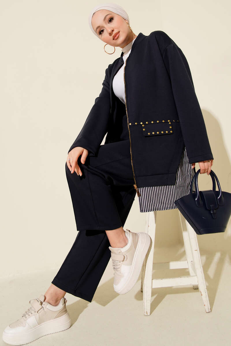 Leopar Garnili Hırkalı İkili Takım Lacivert