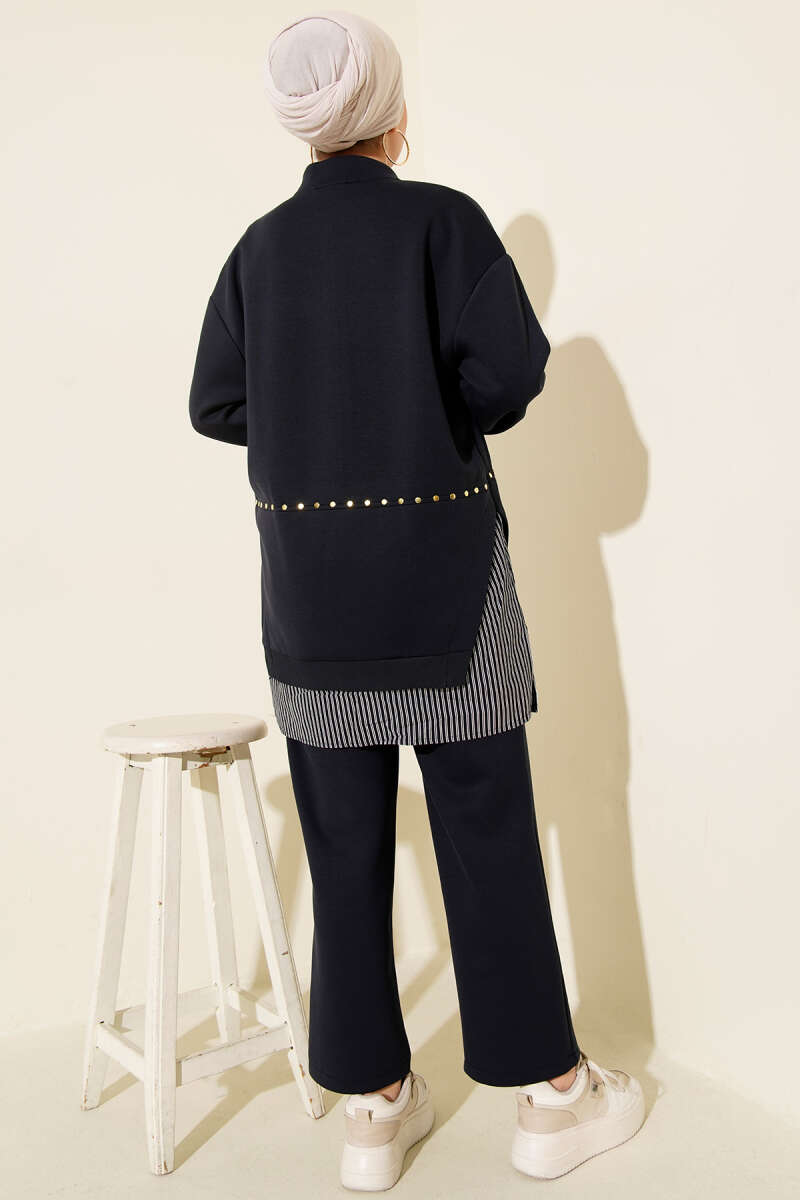 Çizgi Garnili Zımba Detaylı İkili Takım Siyah