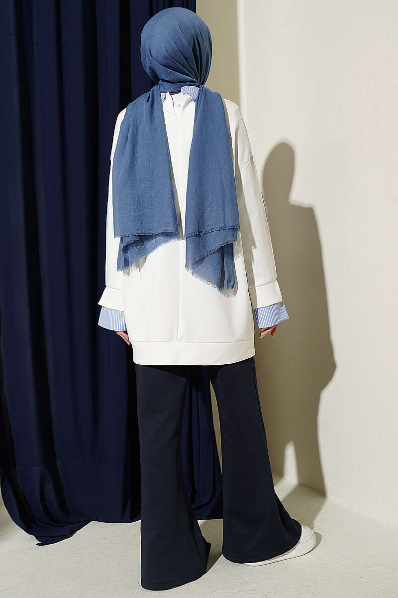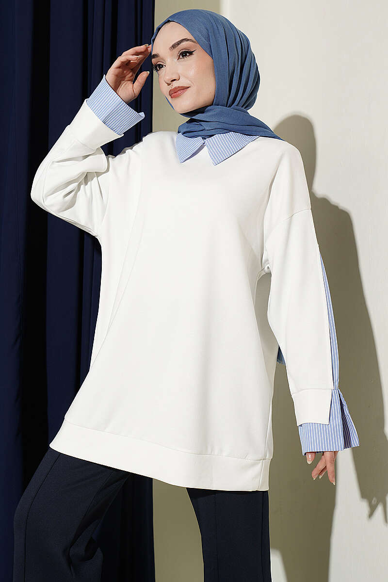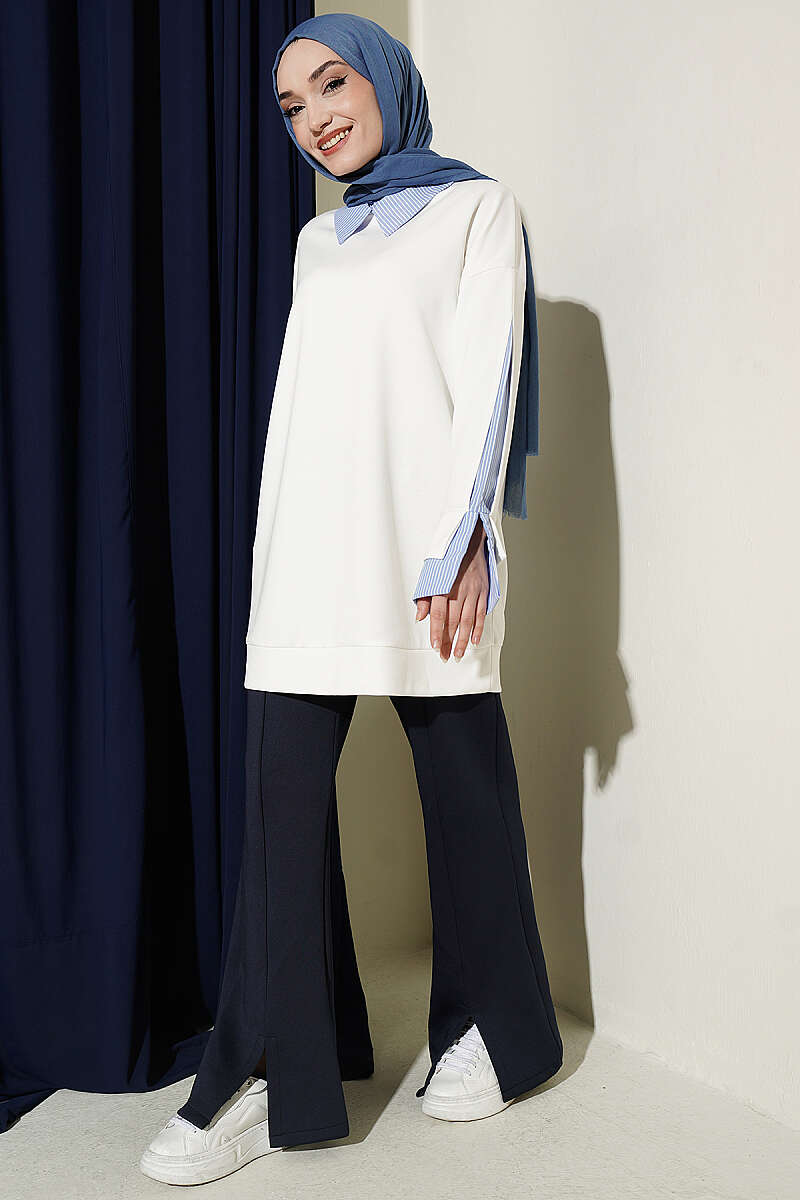 Çizgi Gömlek Garnili Loyşa Tunik Ekru