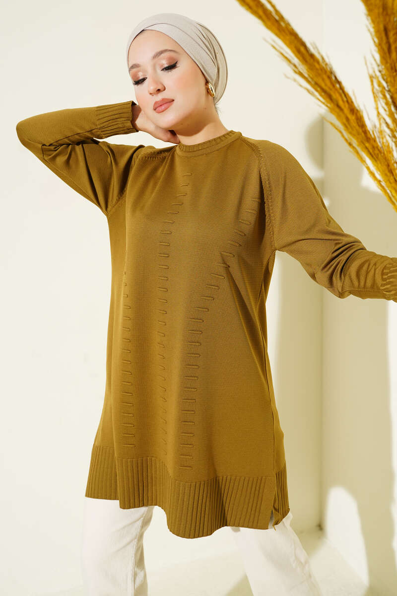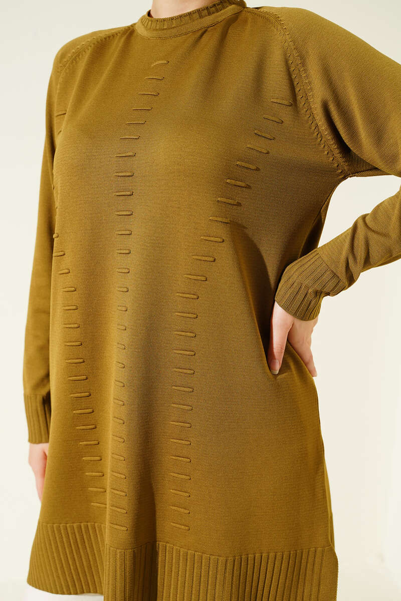 Büyük Çiçek Desenli Triko Tunik Kahve