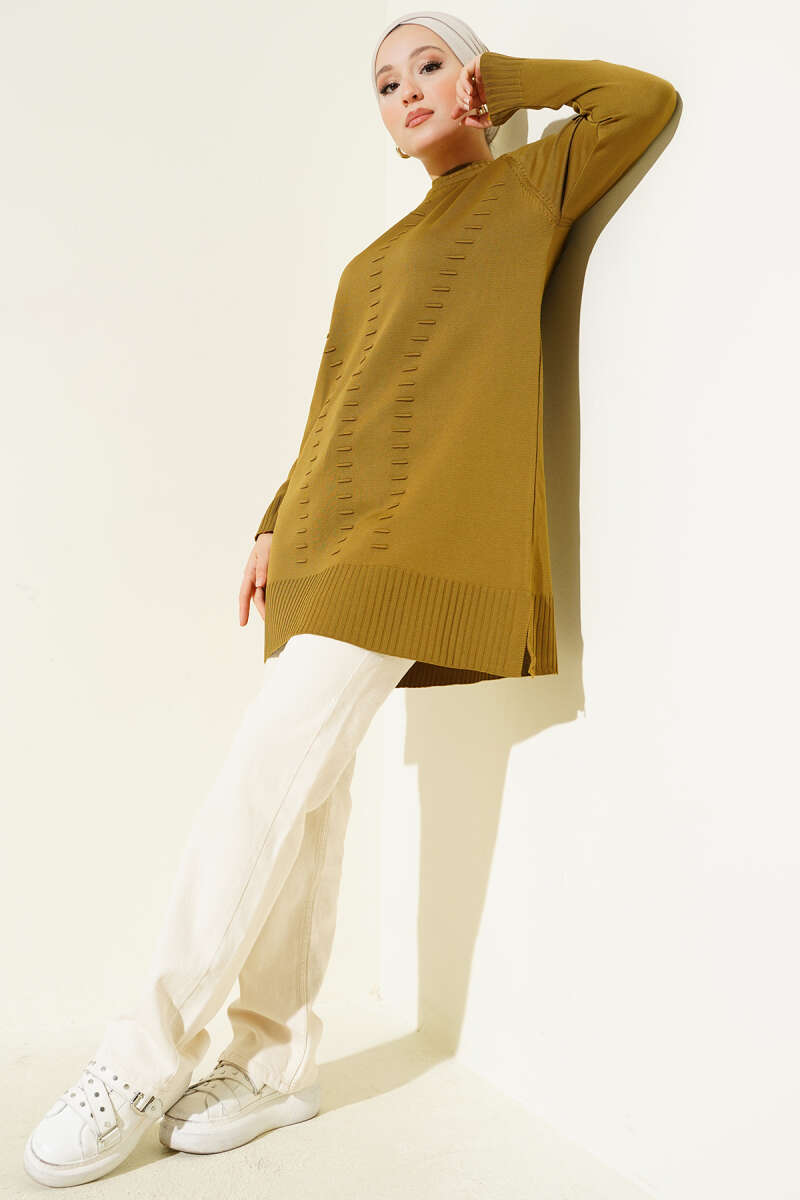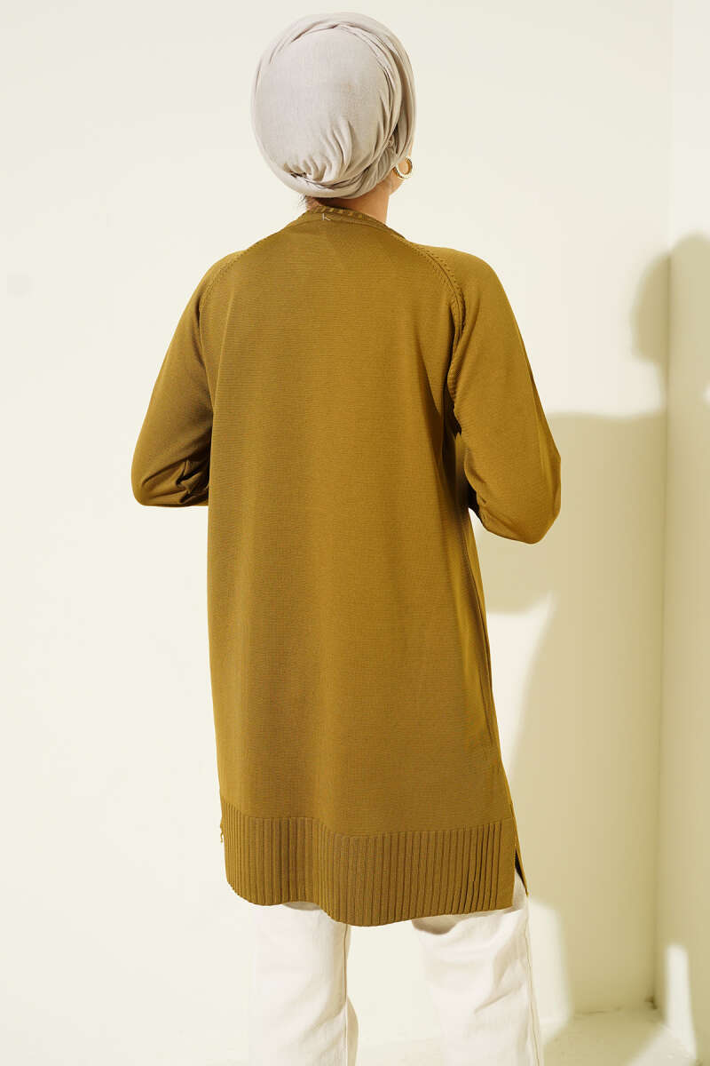 Kol Düğme Detaylı Triko Hırka Yağ Yeşili