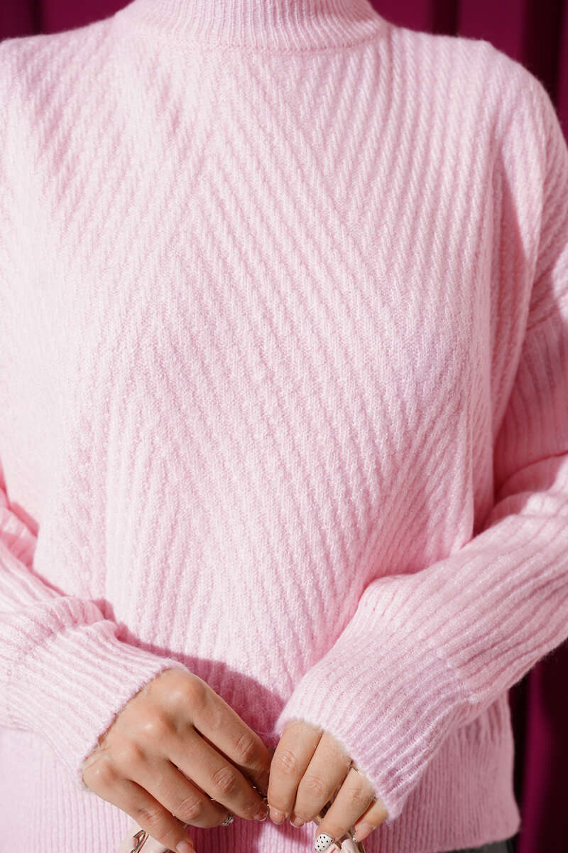 Balıkçı Yaka Parmak Geçirmeli Triko Kazak Saks